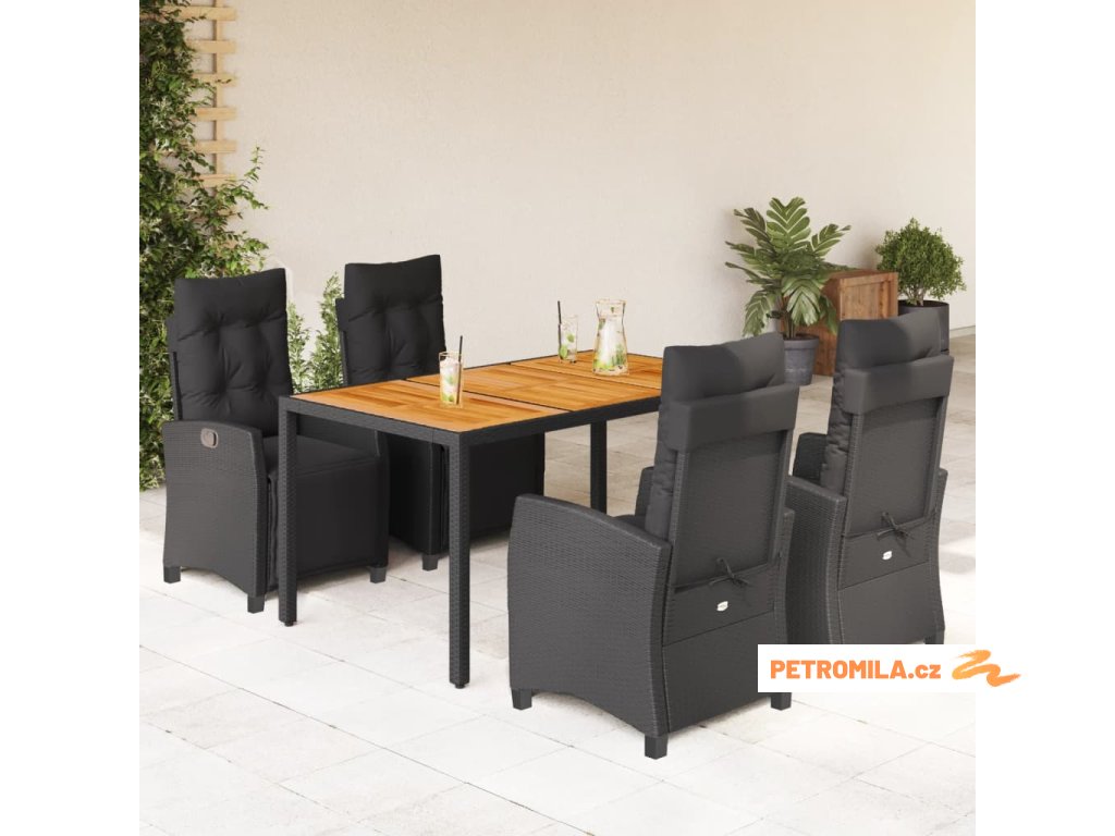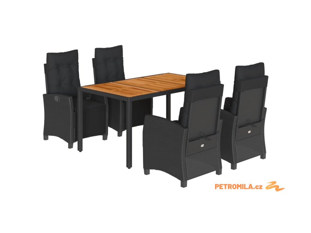 5dílný zahradní jídelní set s poduškami černý polyratan