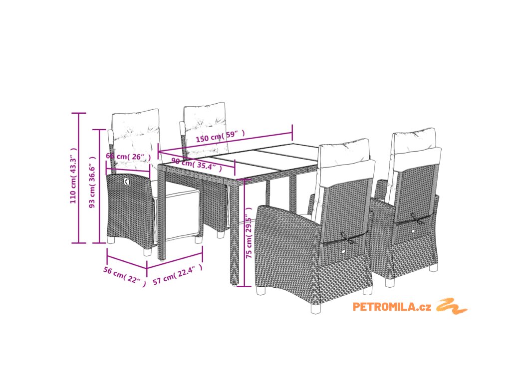 - Rozměry při poloze vsedě: 57 x 66 x 93 cm (Š x H x V)