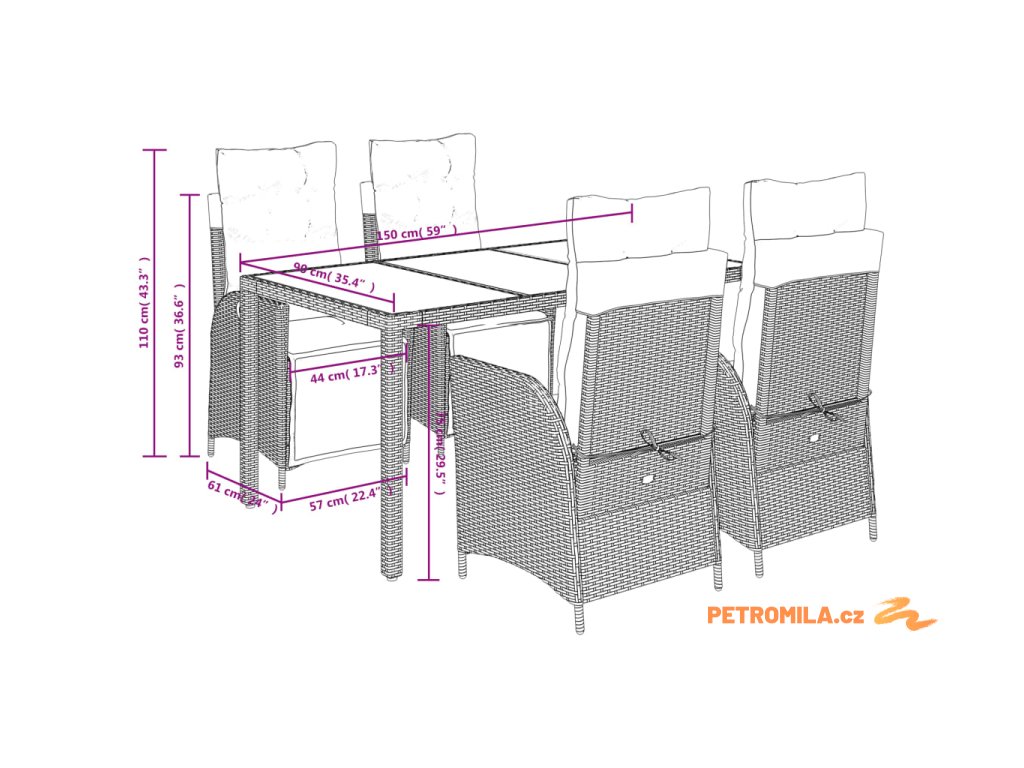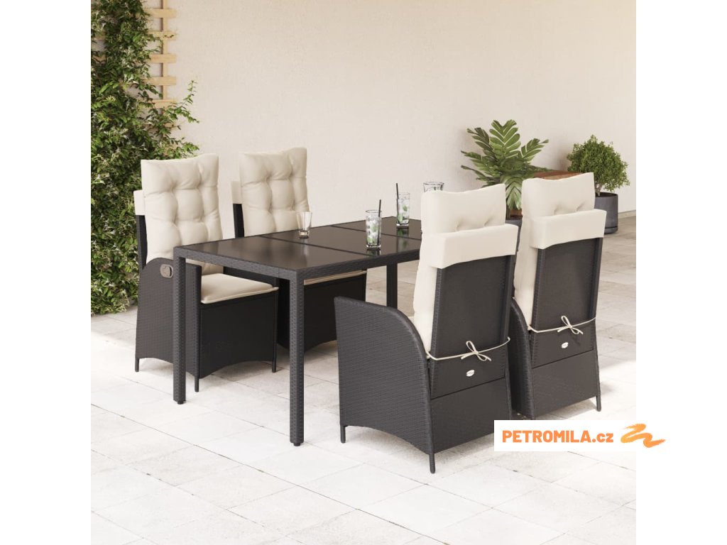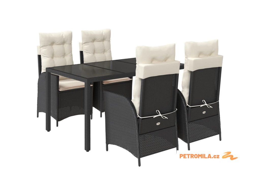 5dílný zahradní jídelní set s poduškami černý polyratan