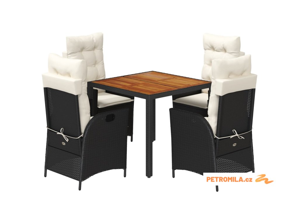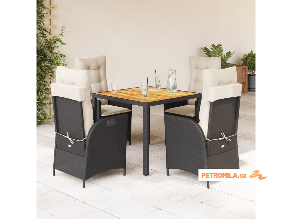 5dílný zahradní jídelní set s poduškami černý polyratan