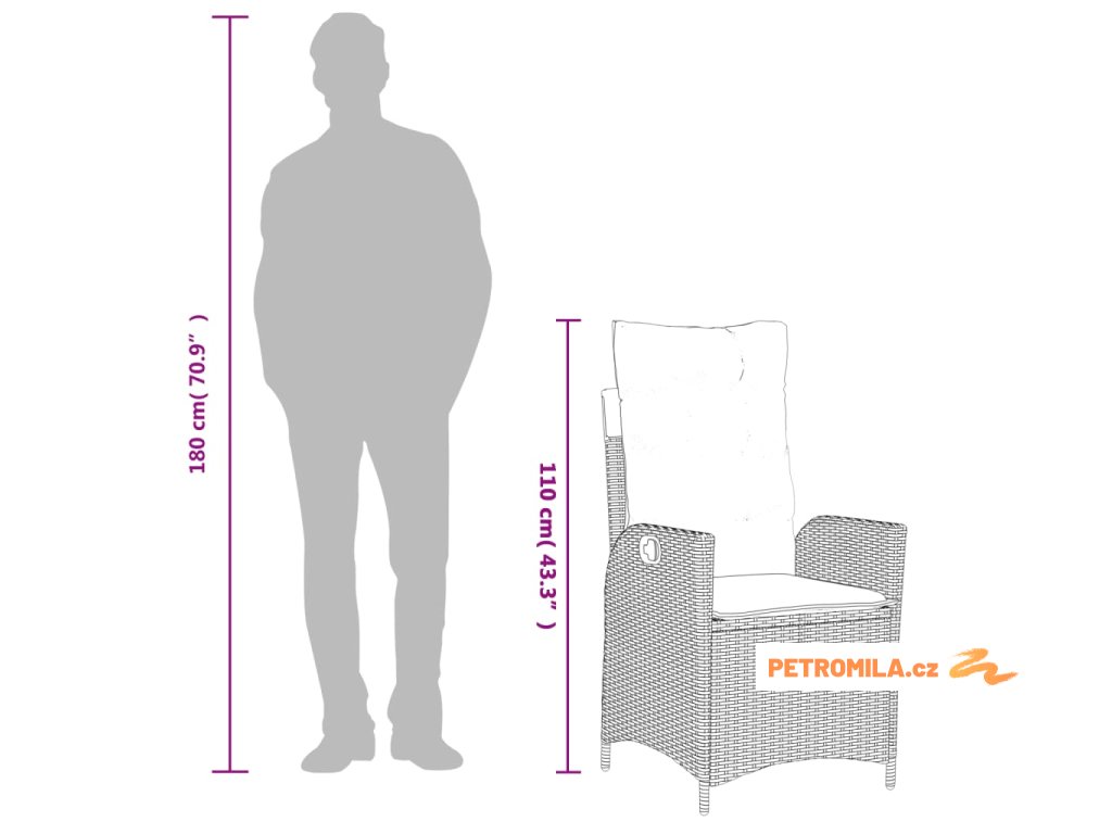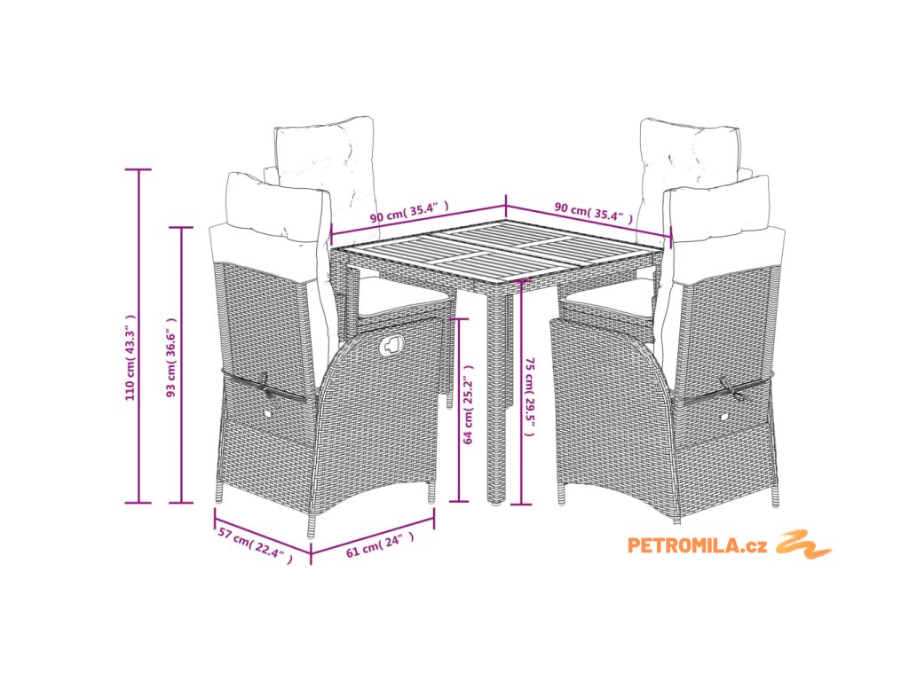 - Materiál: PE ratan, práškově lakovaná ocel, masivní akáciové dřevo s olejovou povrchovou úpravou