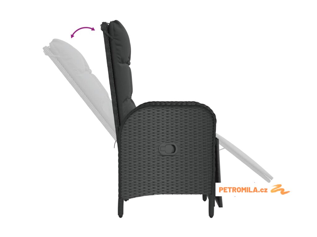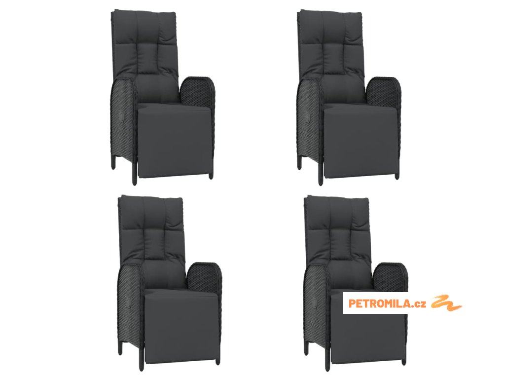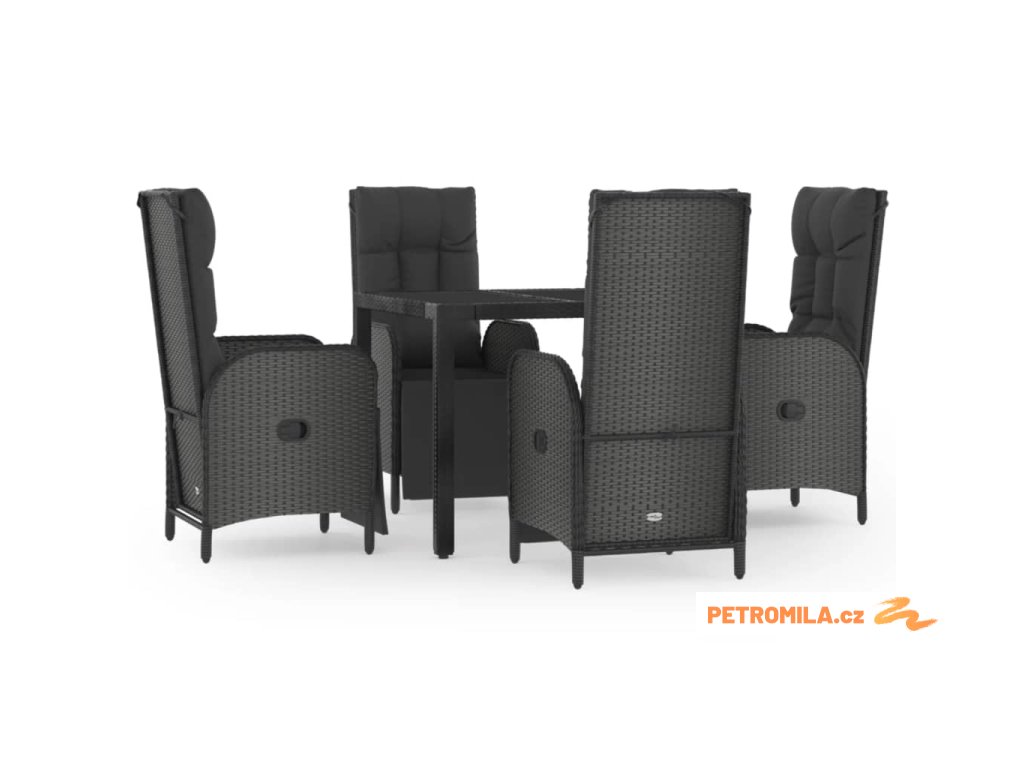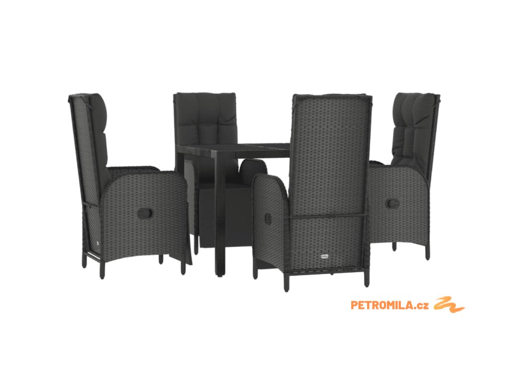 5dílný zahradní jídelní set s poduškami černý polyratan