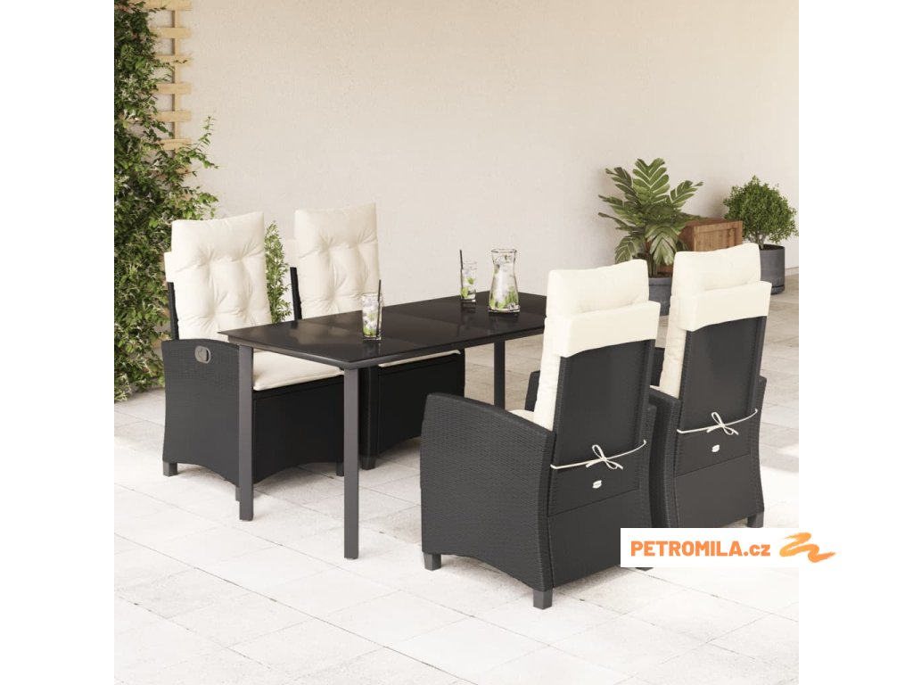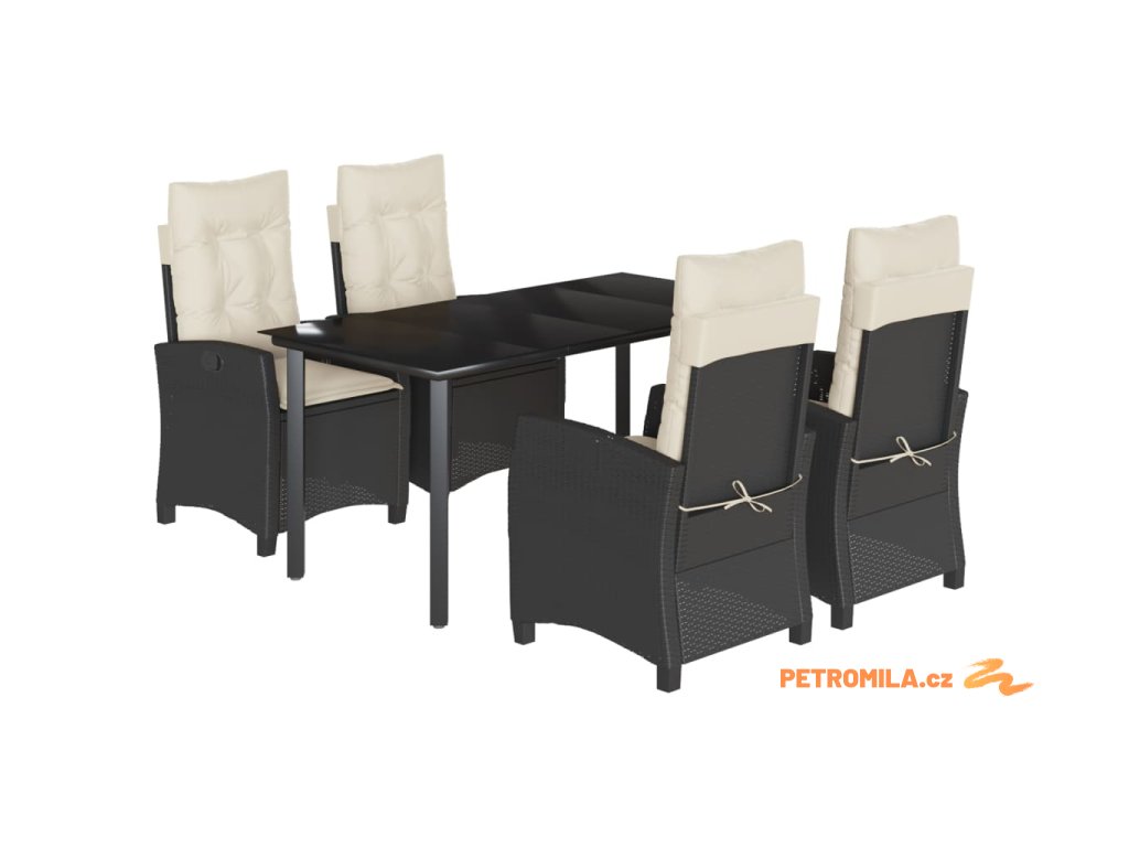 5dílný zahradní jídelní set s poduškami černý polyratan