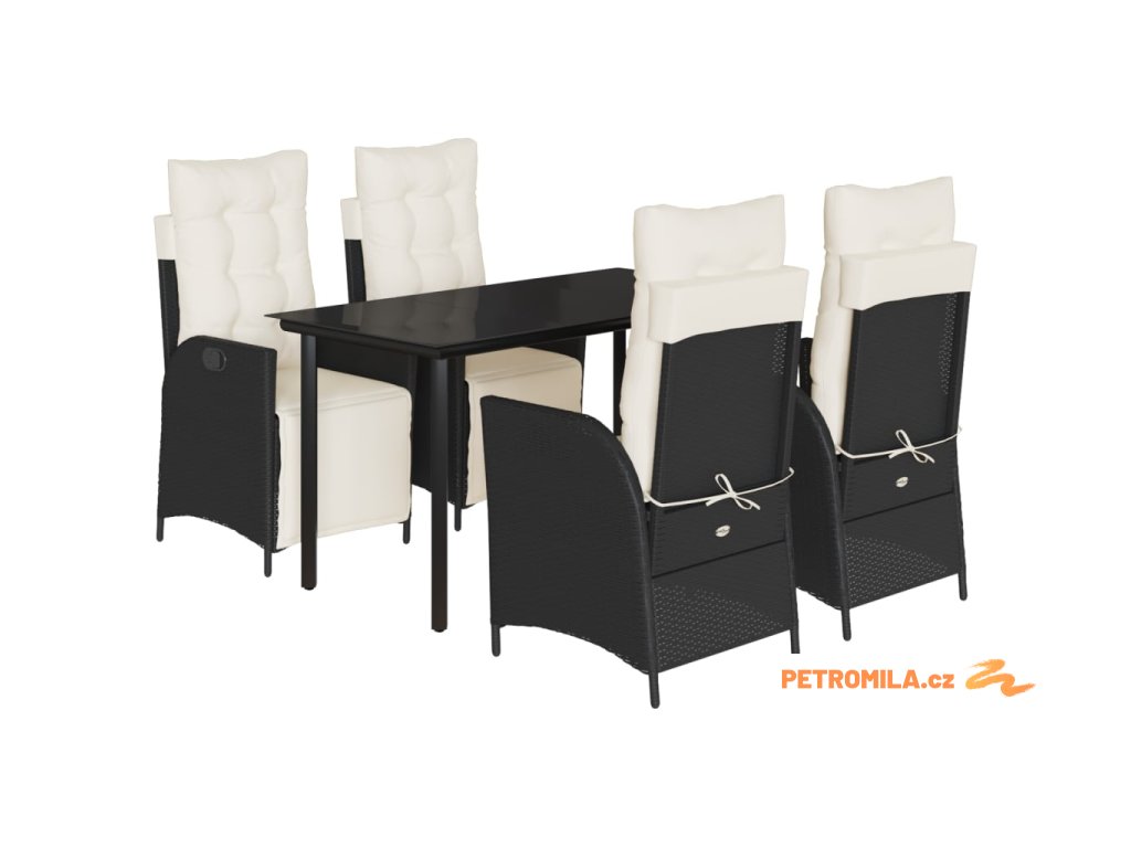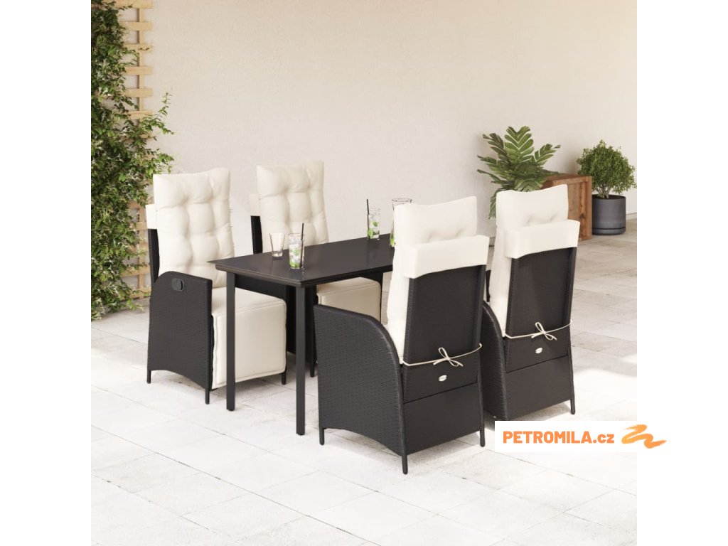 5dílný zahradní jídelní set s poduškami černý polyratan