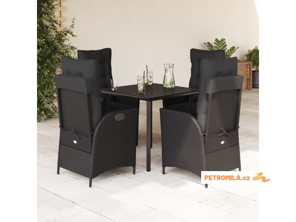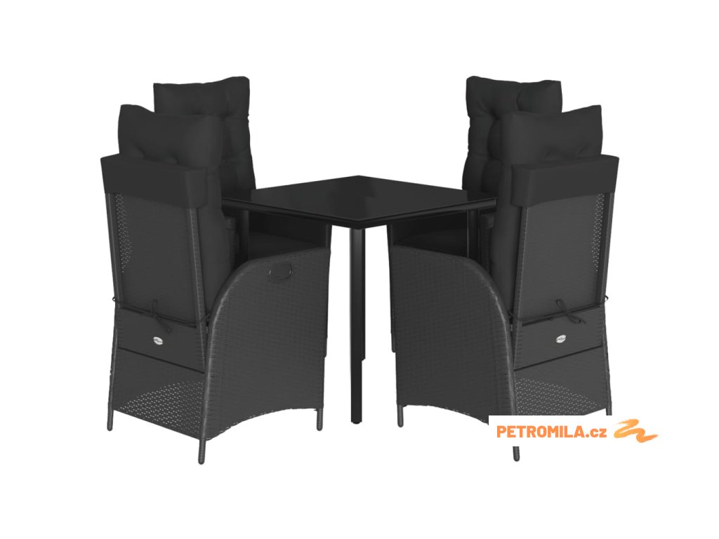 5dílný zahradní jídelní set s poduškami černý polyratan