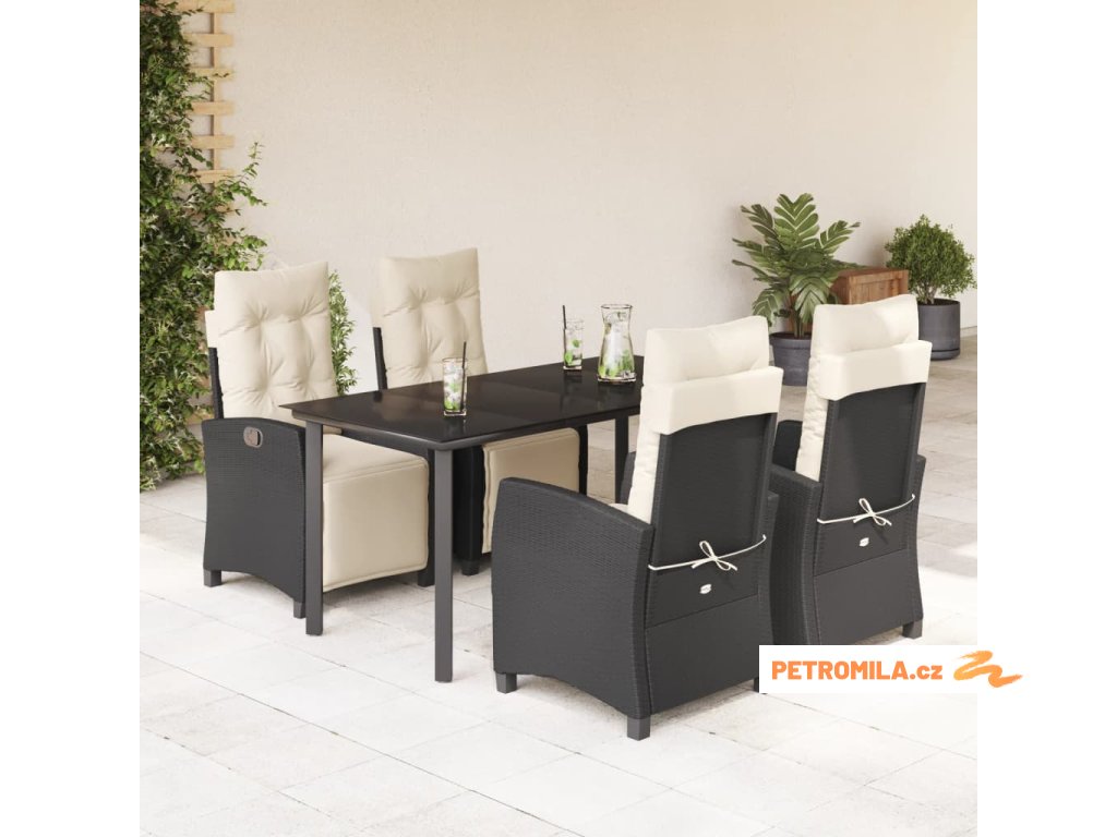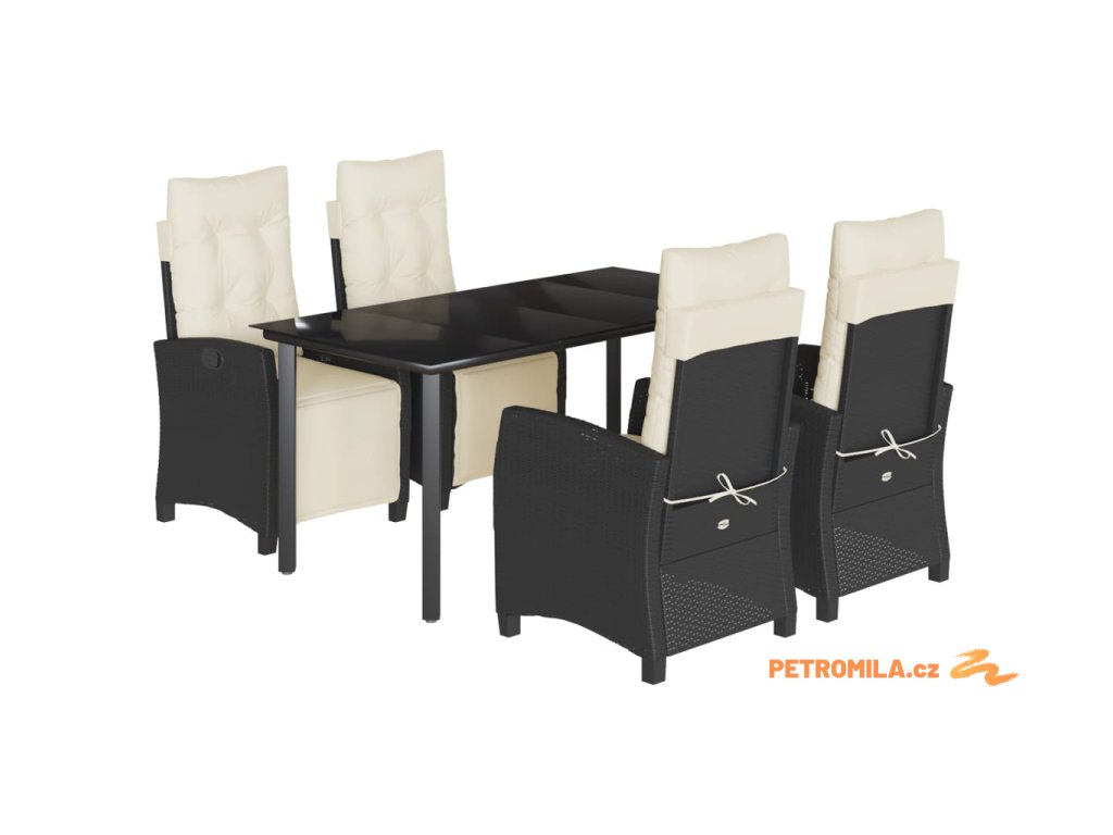 5dílný zahradní jídelní set s poduškami černý polyratan