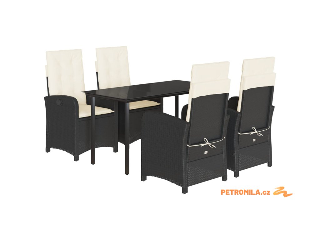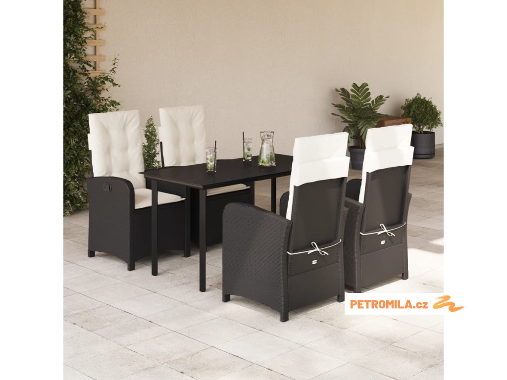5dílný zahradní jídelní set s poduškami černý polyratan