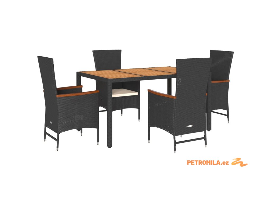 5dílný zahradní jídelní set s poduškami černý polyratan