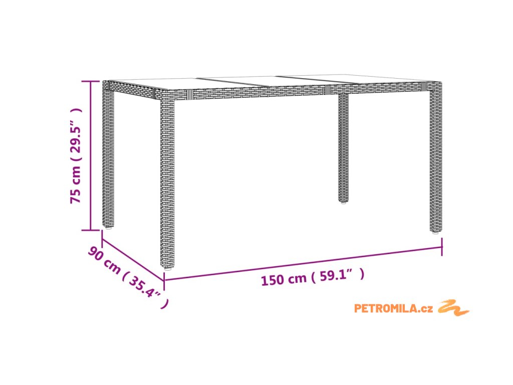 - Rozměry: 150 x 90 x 75 cm (D x Š x V)