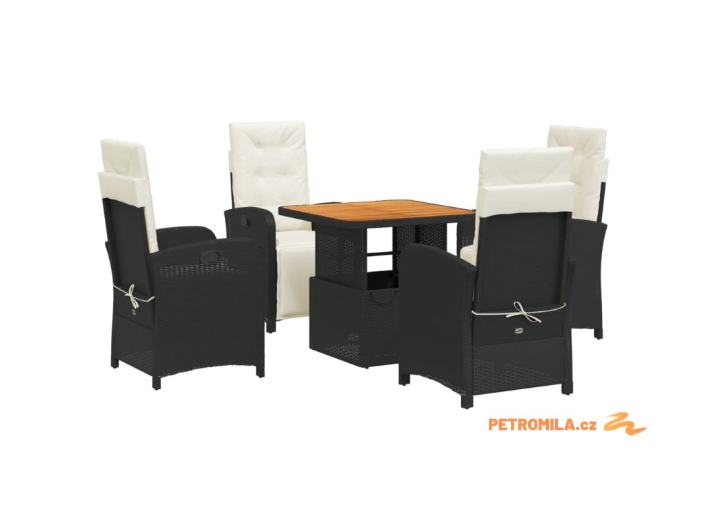 5dílný zahradní jídelní set s poduškami černý polyratan