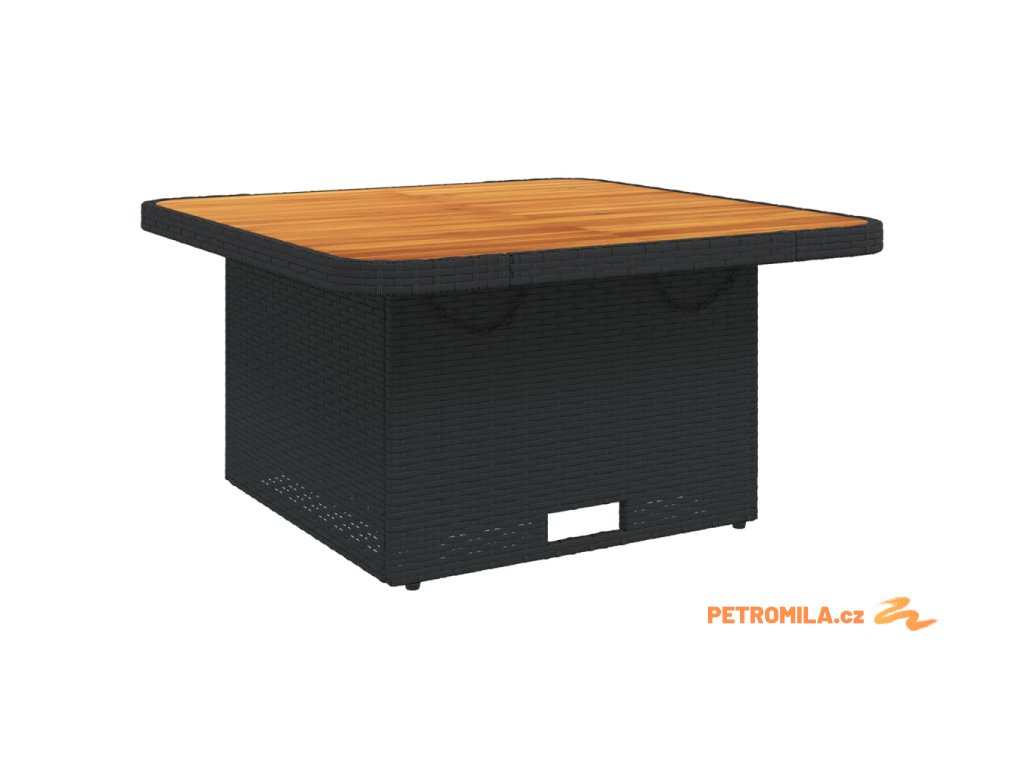 - Materiál: PE ratan, práškově lakovaná ocel, masivní akáciové dřevo s olejovou povrchovou úpravou