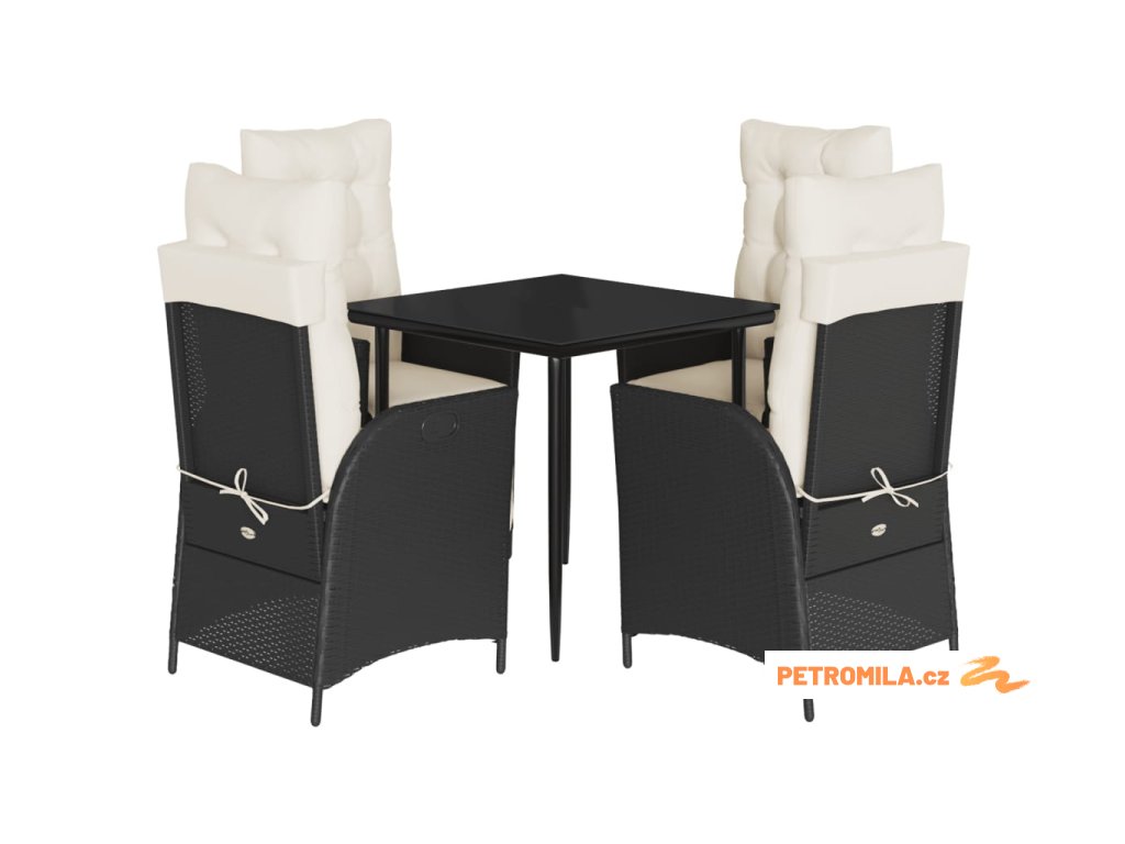 Zahradní jídelní souprava s polštářem 5 pcs Černá Poly ratan
