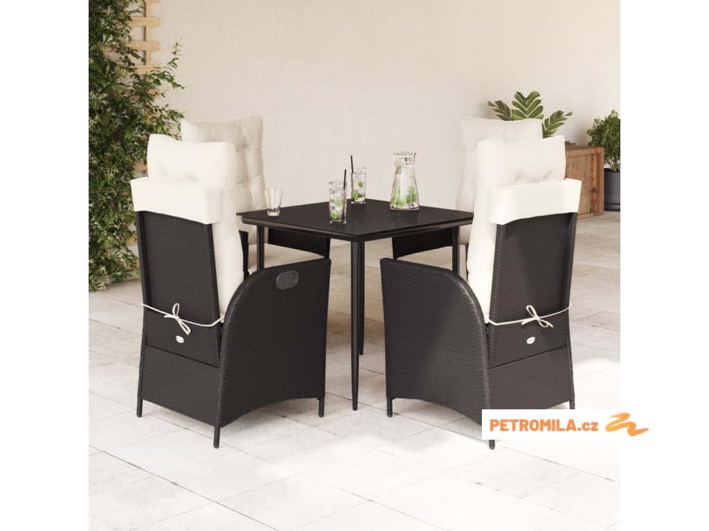 5dílný zahradní jídelní set s poduškami černý polyratan
