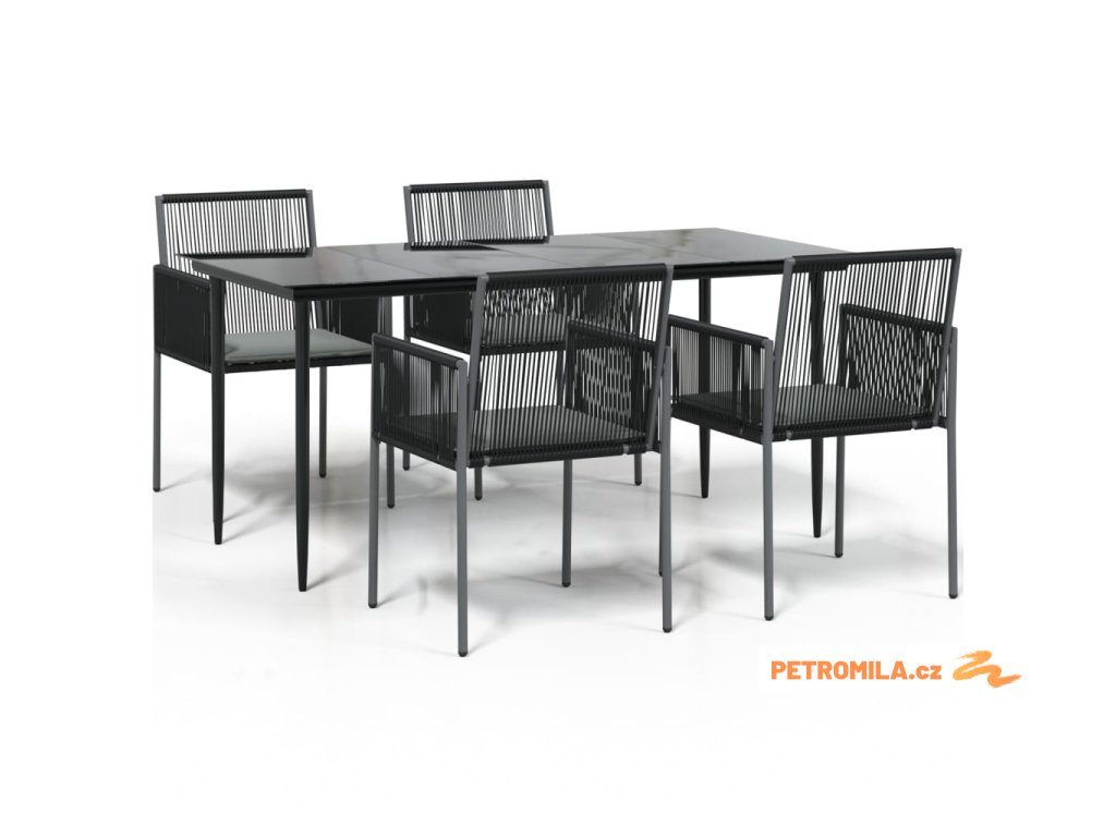5dílný zahradní jídelní set s poduškami černý polyratan a ocel
