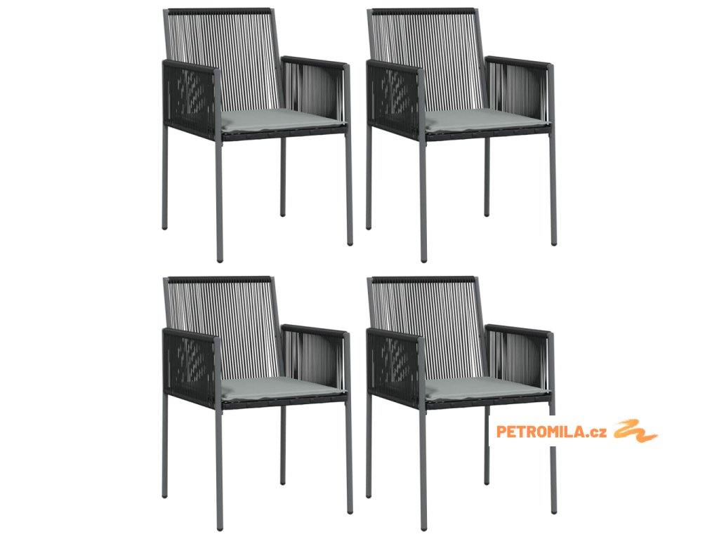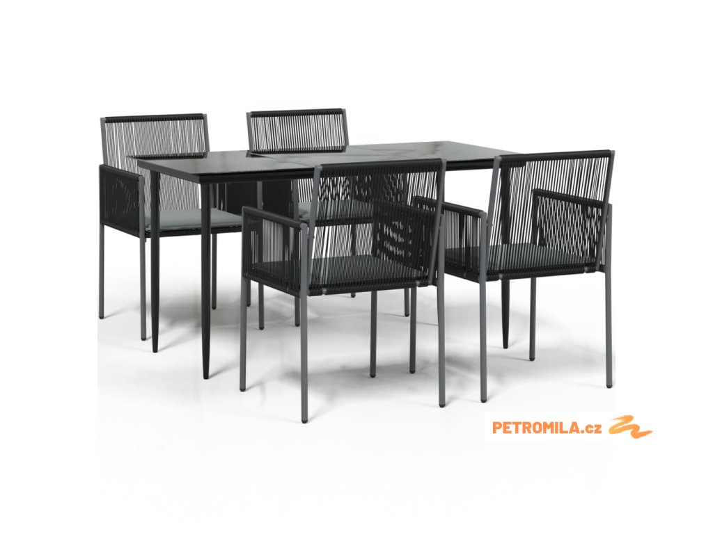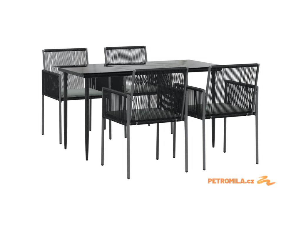 5dílný zahradní jídelní set s poduškami černý polyratan a ocel