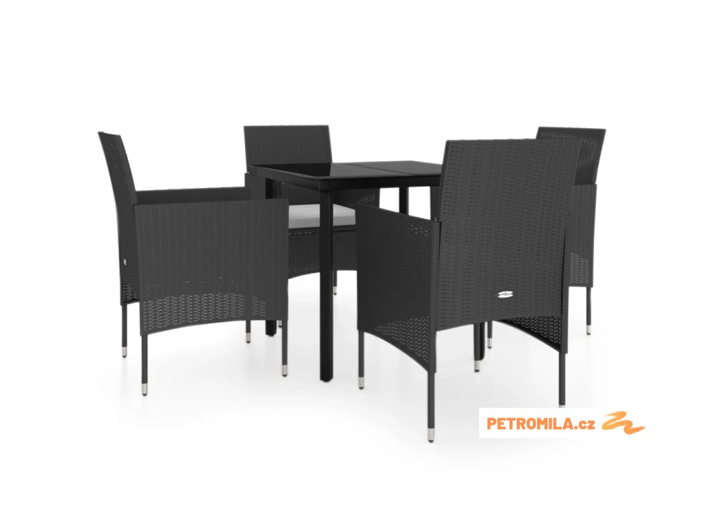 5dílný zahradní jídelní set s poduškami černý