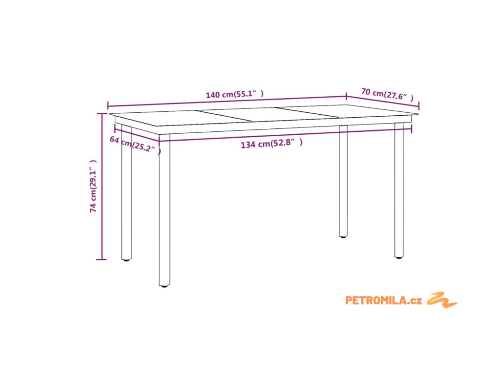 - Rozměry stolu: 140 x 70 x 74 cm (D x Š x V)