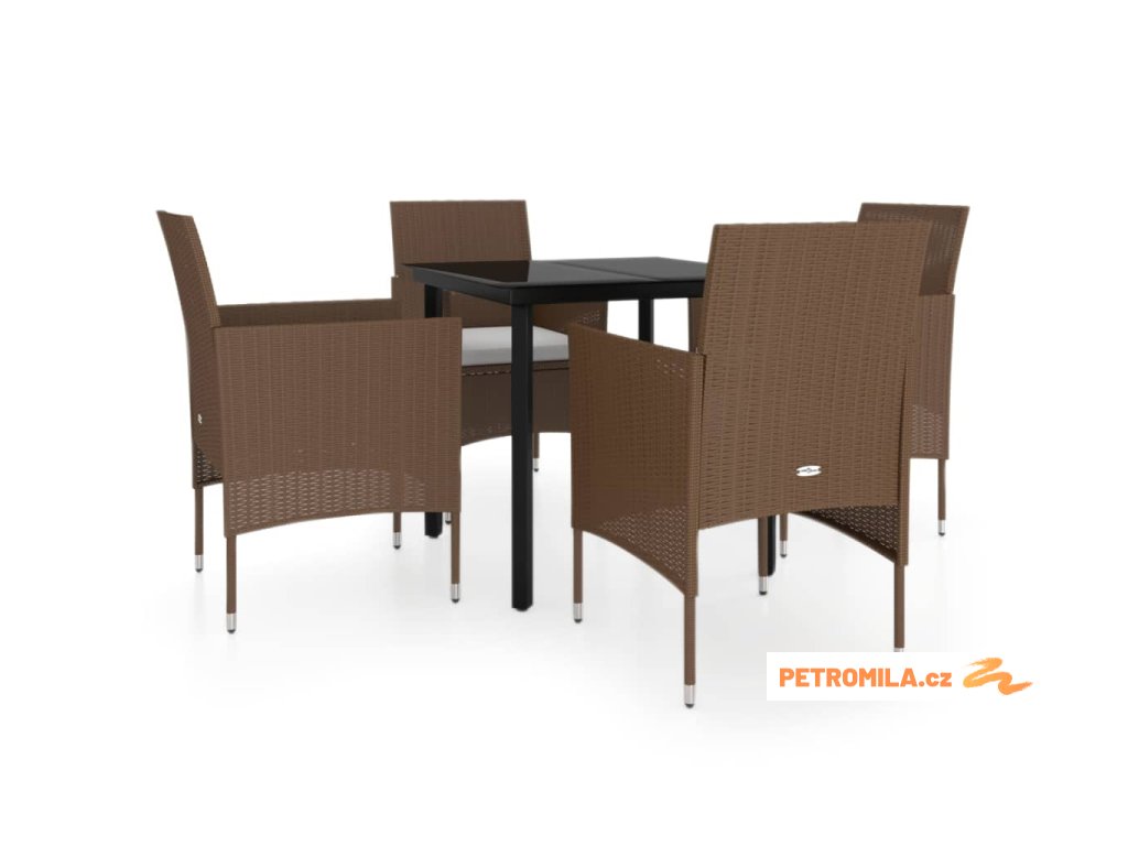 5dílný zahradní jídelní set s poduškami hnědý a černý