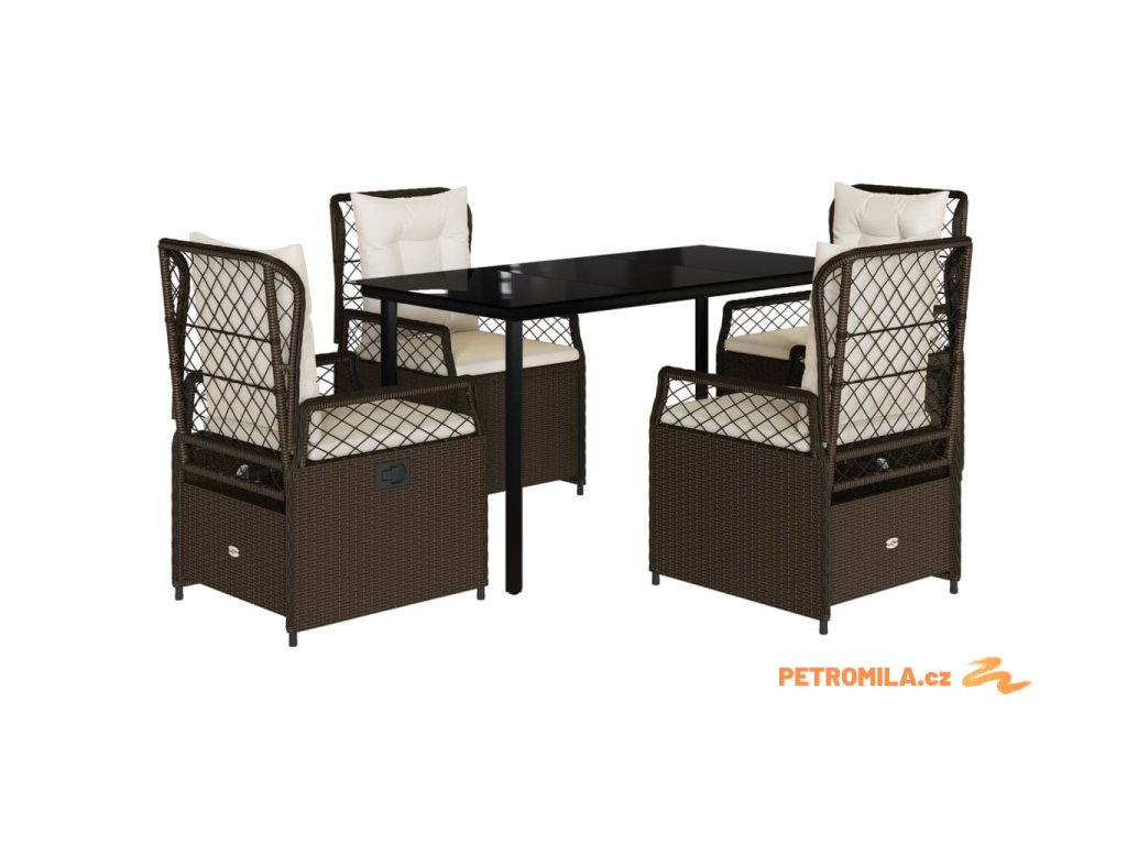 5dílný zahradní jídelní set s poduškami hnědý polyratan