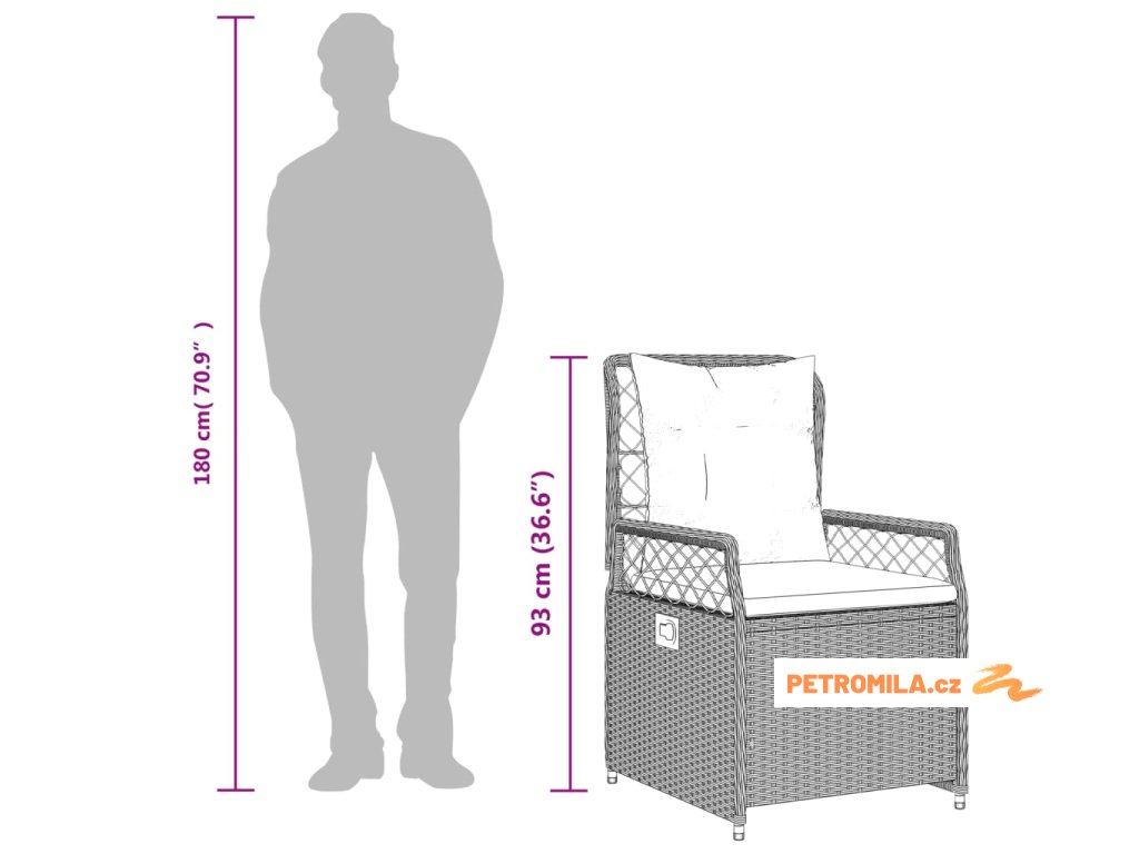 - Materiál: PE ratan, práškově lakovaná ocel