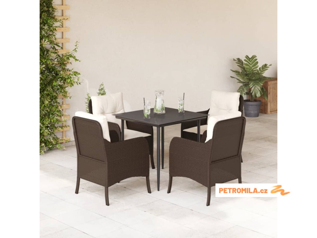 5dílný zahradní jídelní set s poduškami hnědý polyratan