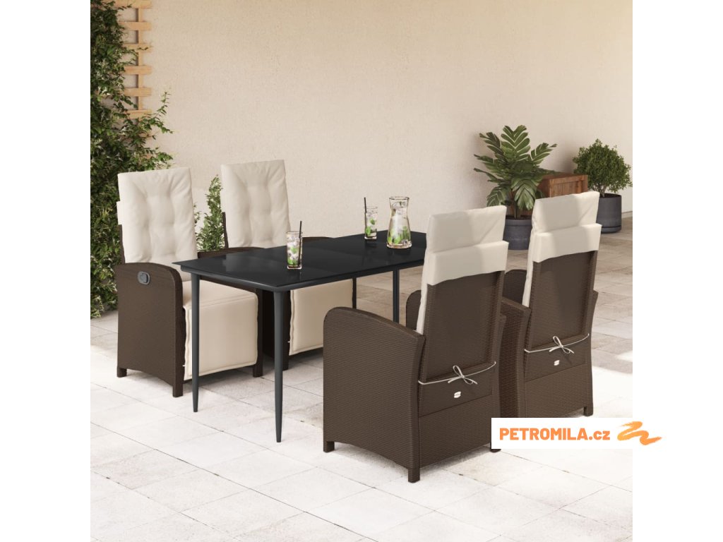 5dílný zahradní jídelní set s poduškami hnědý polyratan