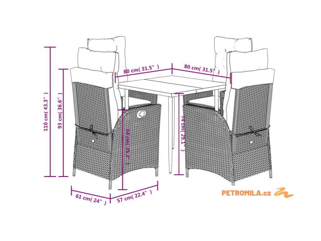 - Rozměry: 80 x 80 x 74 cm (D x Š x V)