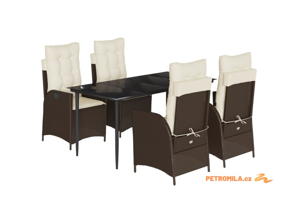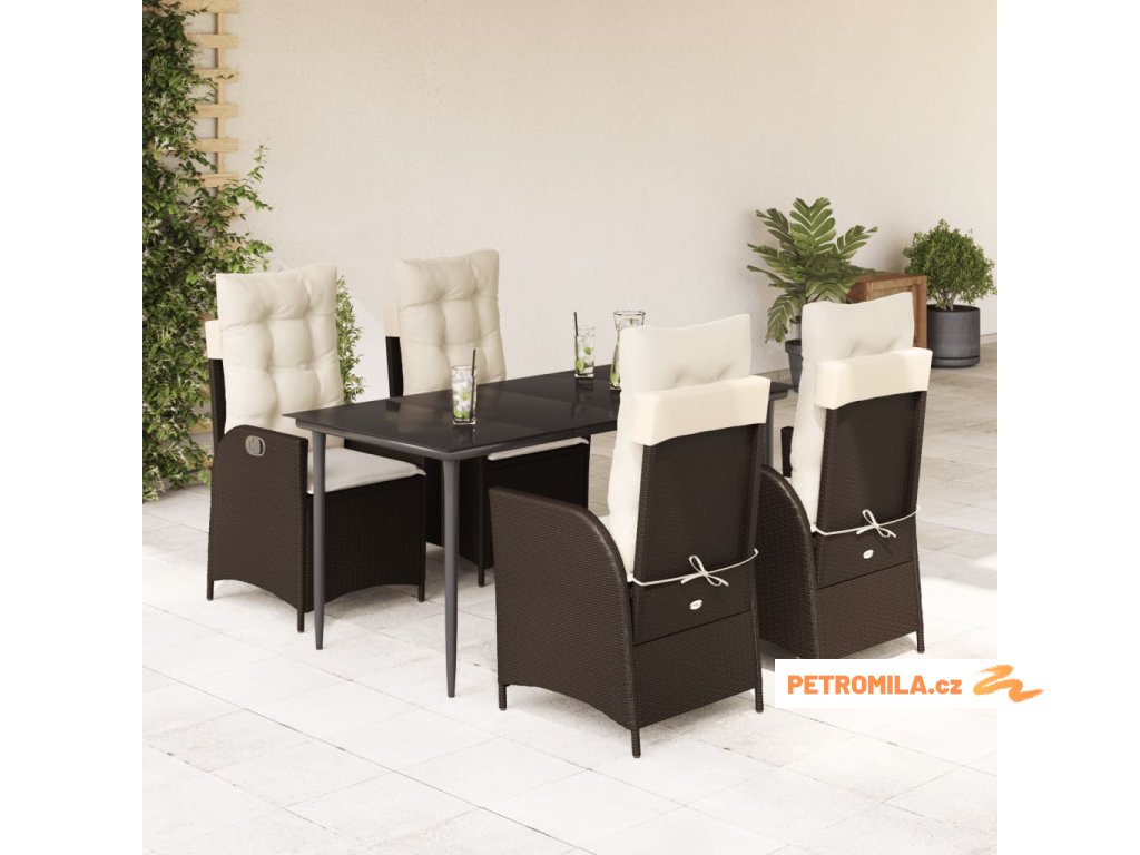 5dílný zahradní jídelní set s poduškami hnědý polyratan