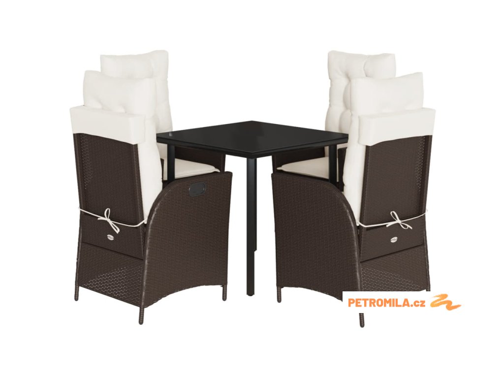 5dílný zahradní jídelní set s poduškami hnědý polyratan