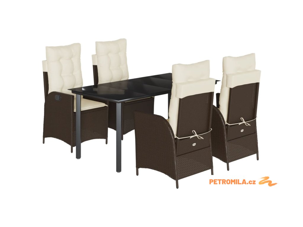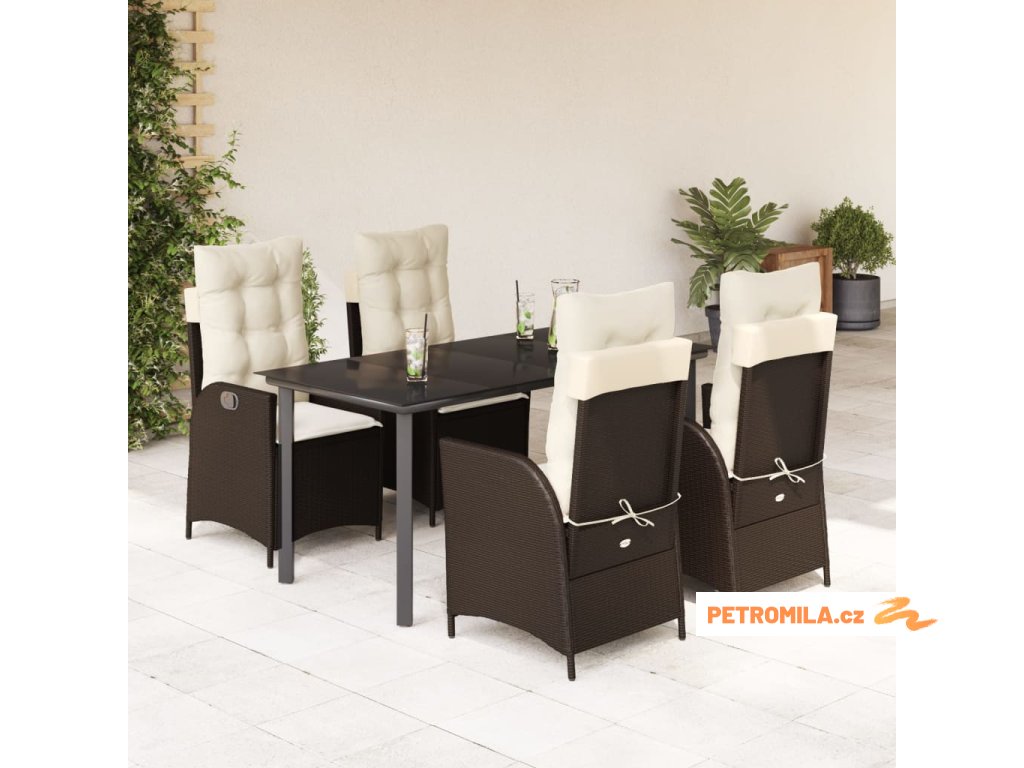 5dílný zahradní jídelní set s poduškami hnědý polyratan