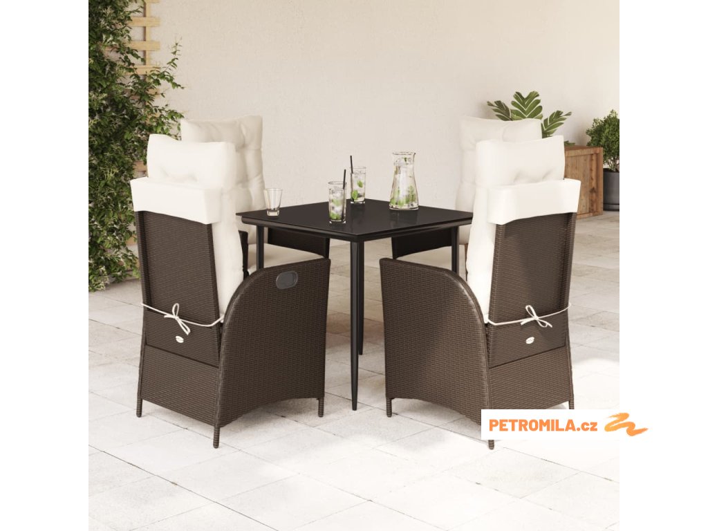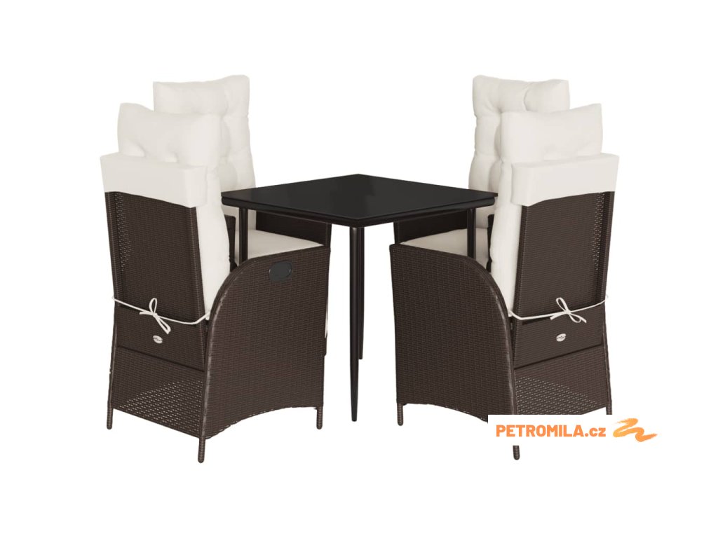 5dílný zahradní jídelní set s poduškami hnědý polyratan