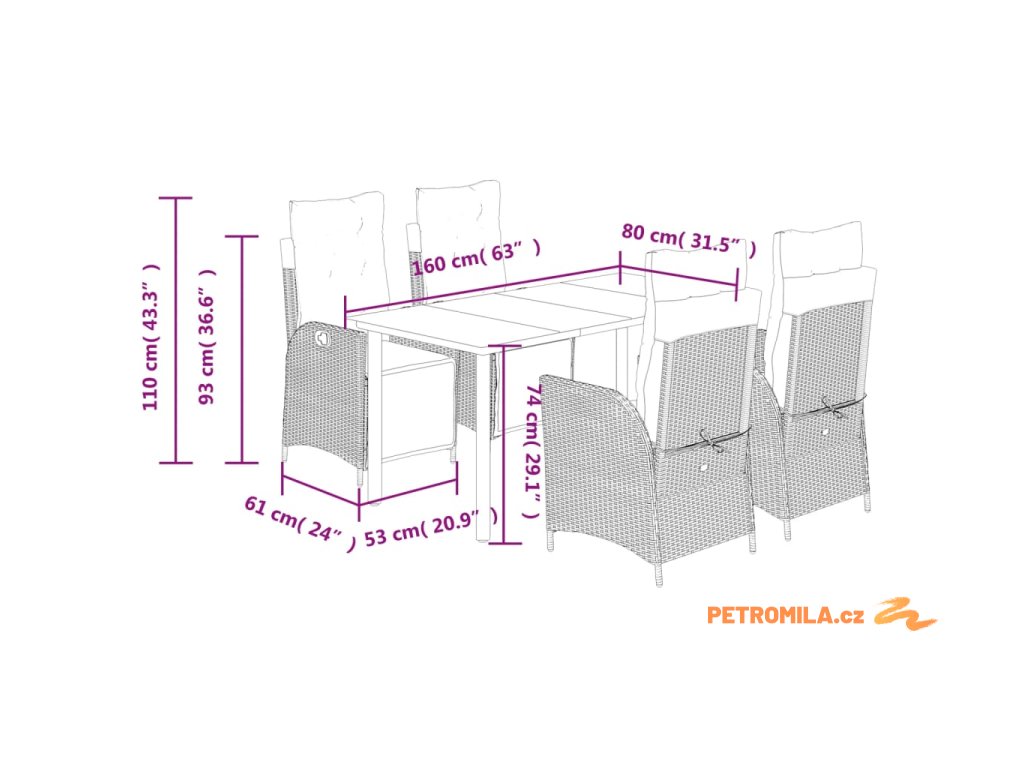 5dílný zahradní jídelní set s poduškami hnědý polyratan