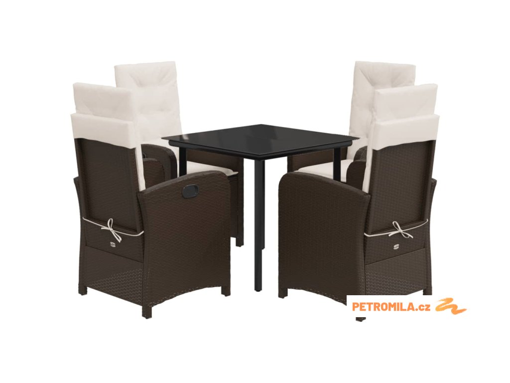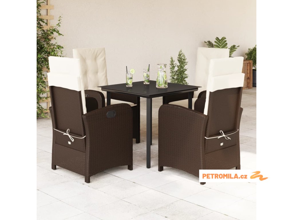5dílný zahradní jídelní set s poduškami hnědý polyratan