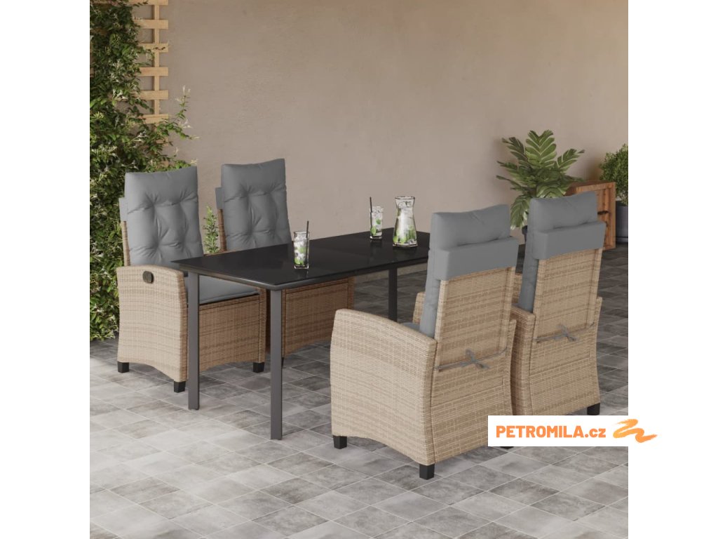 5dílný zahradní jídelní set s poduškami mix béžové polyratan