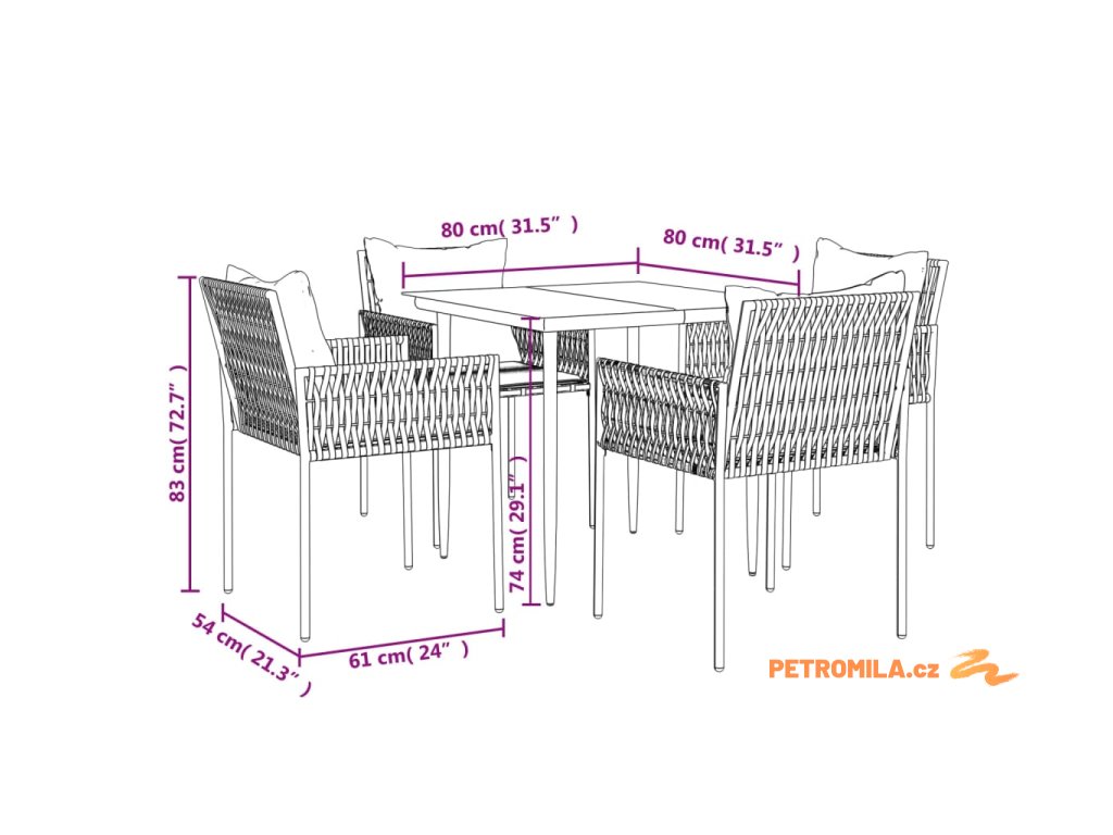 - Rozměry: 80 x 80 x 74 cm (D x Š x V)