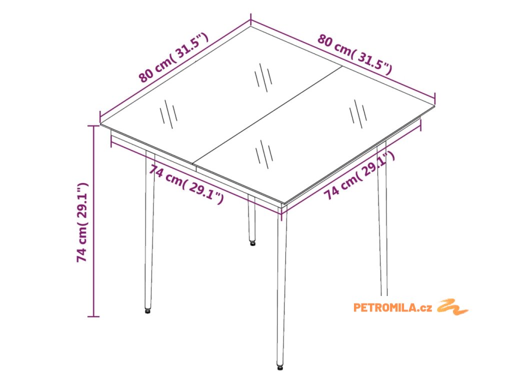 - Rozměry stolu: 80 x 80 x 74 cm (D x Š x V)