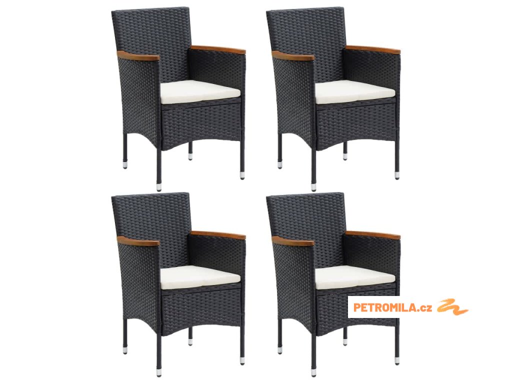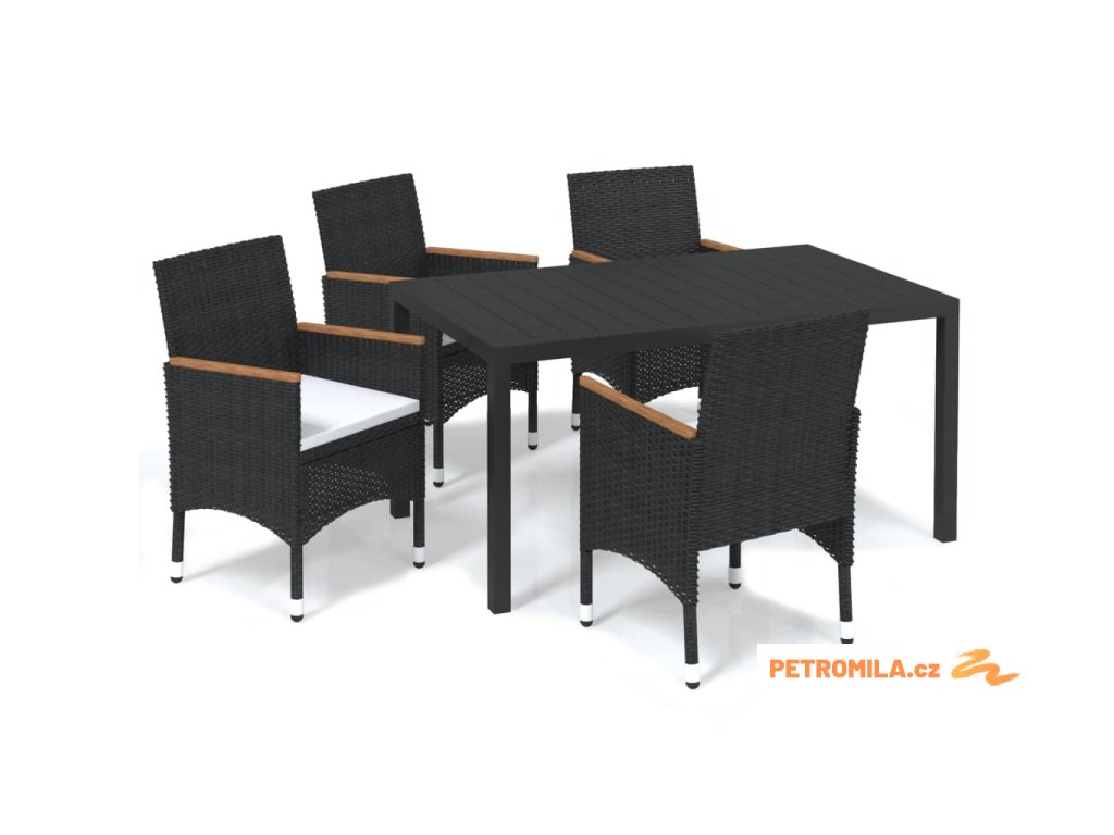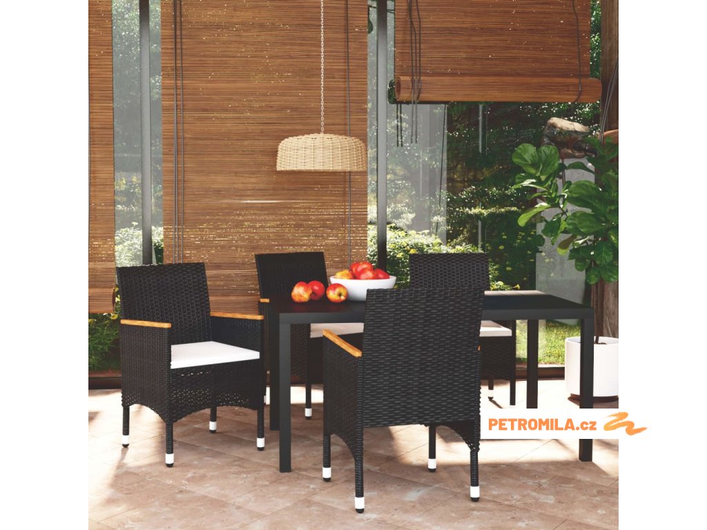 5dílný zahradní jídelní set s poduškami polyratan černý