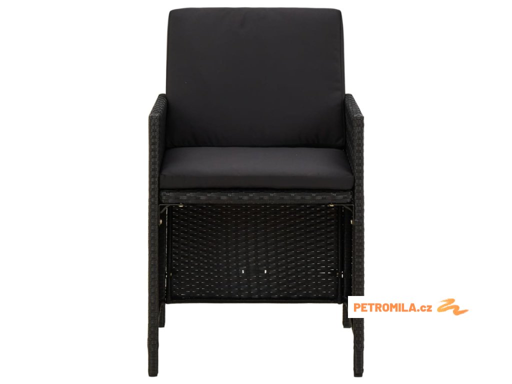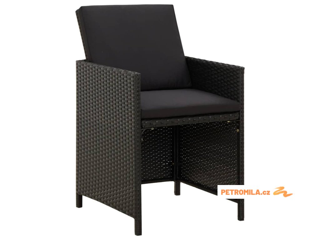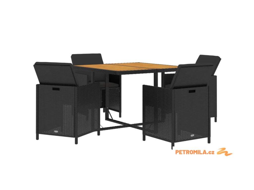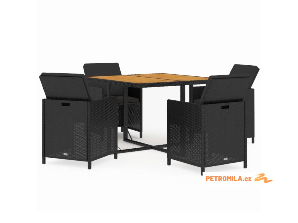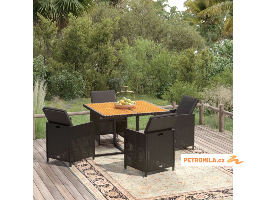 5dílný zahradní jídelní set s poduškami polyratan černý