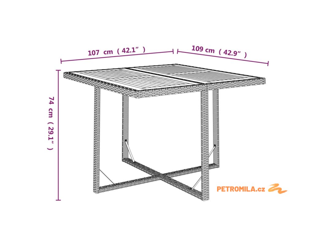 - Rozměry stolu: 109 x 107 x 74 cm (D x Š x V)