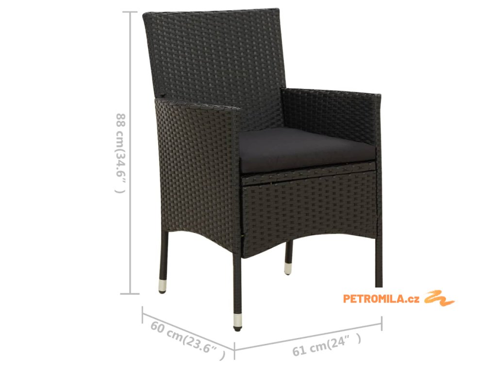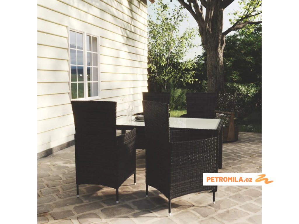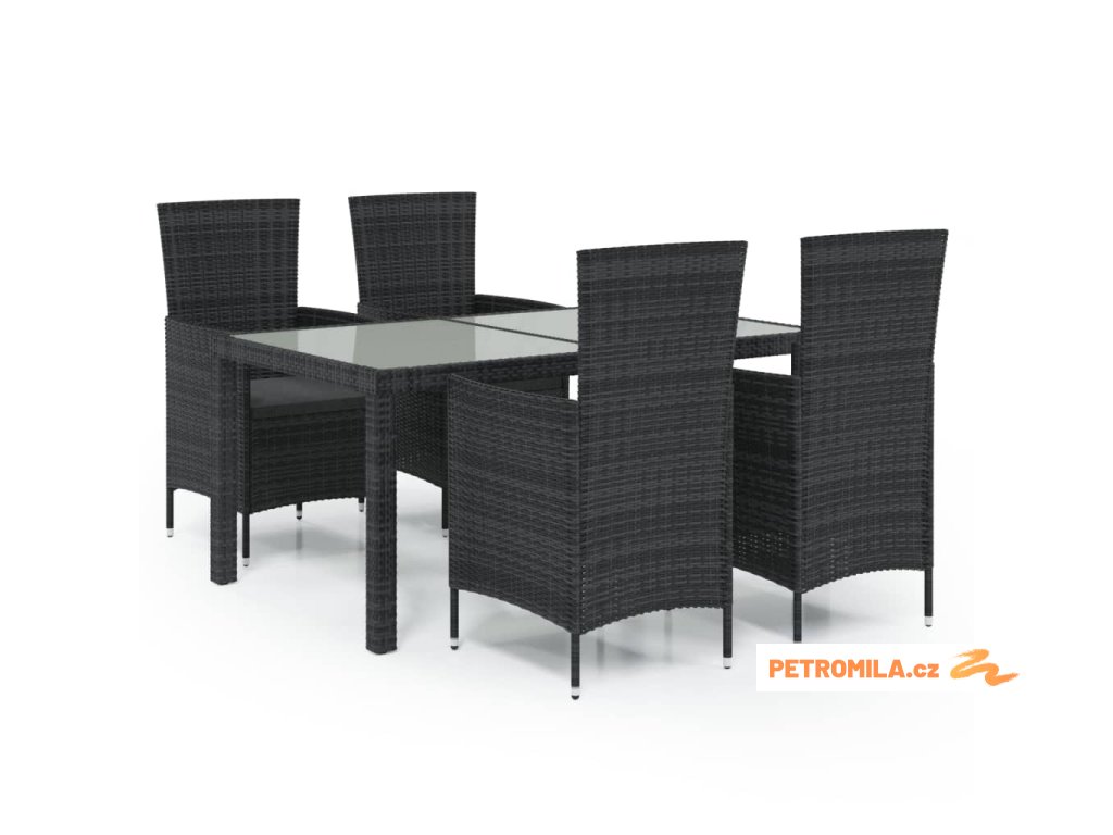 5dílný zahradní jídelní set s poduškami polyratan černý