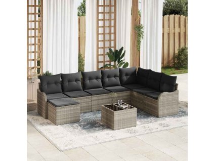 - Materiál: PE ratan, ocel, textil (100% polyester), masivní akáciové dřevo s přírodním olejovým povrchem