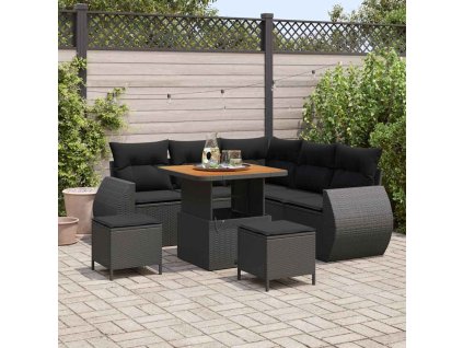 5dílný zahradní jídelní set s poduškami polyratan černý