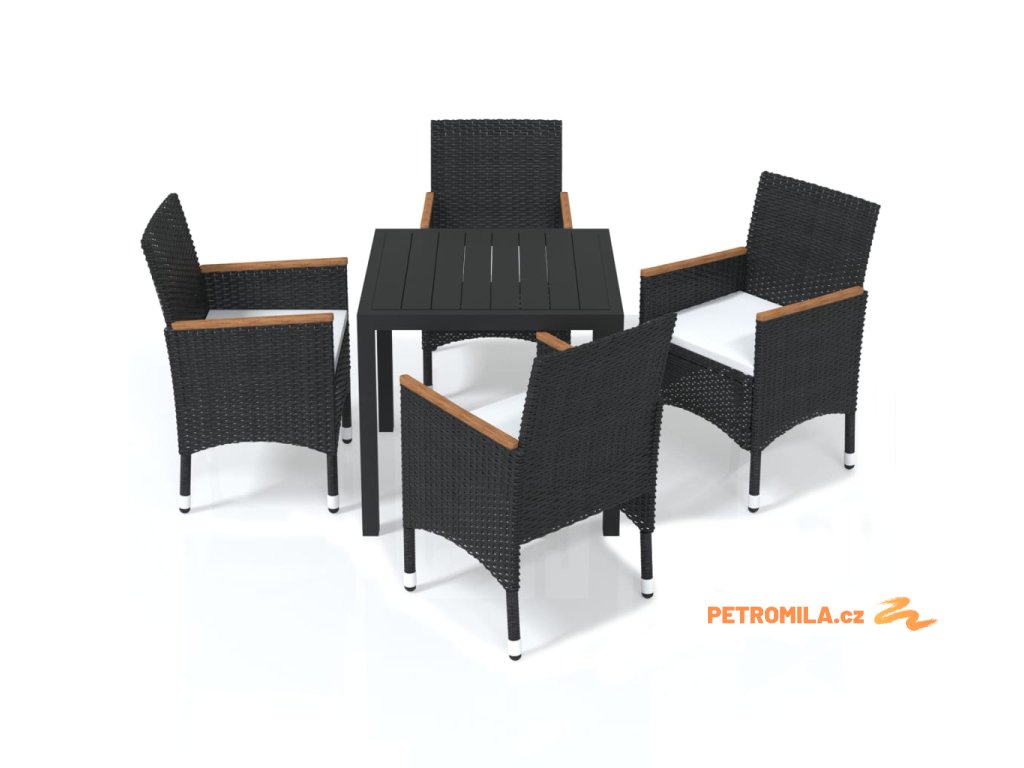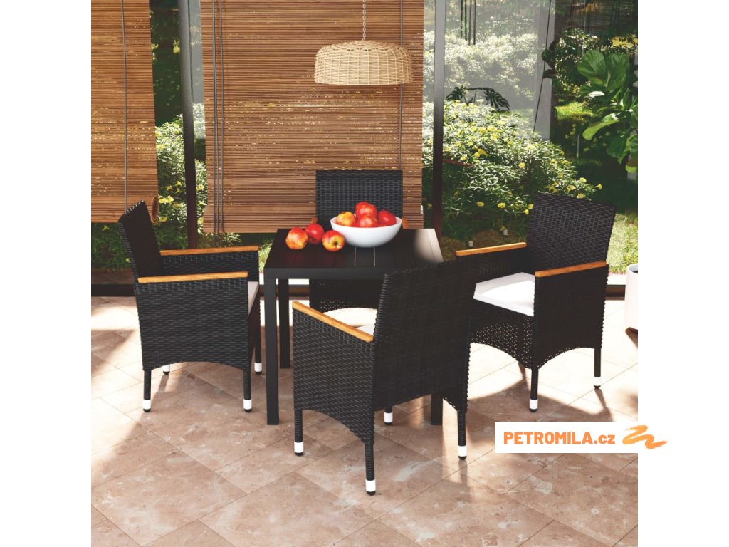 5dílný zahradní jídelní set s poduškami polyratan černý