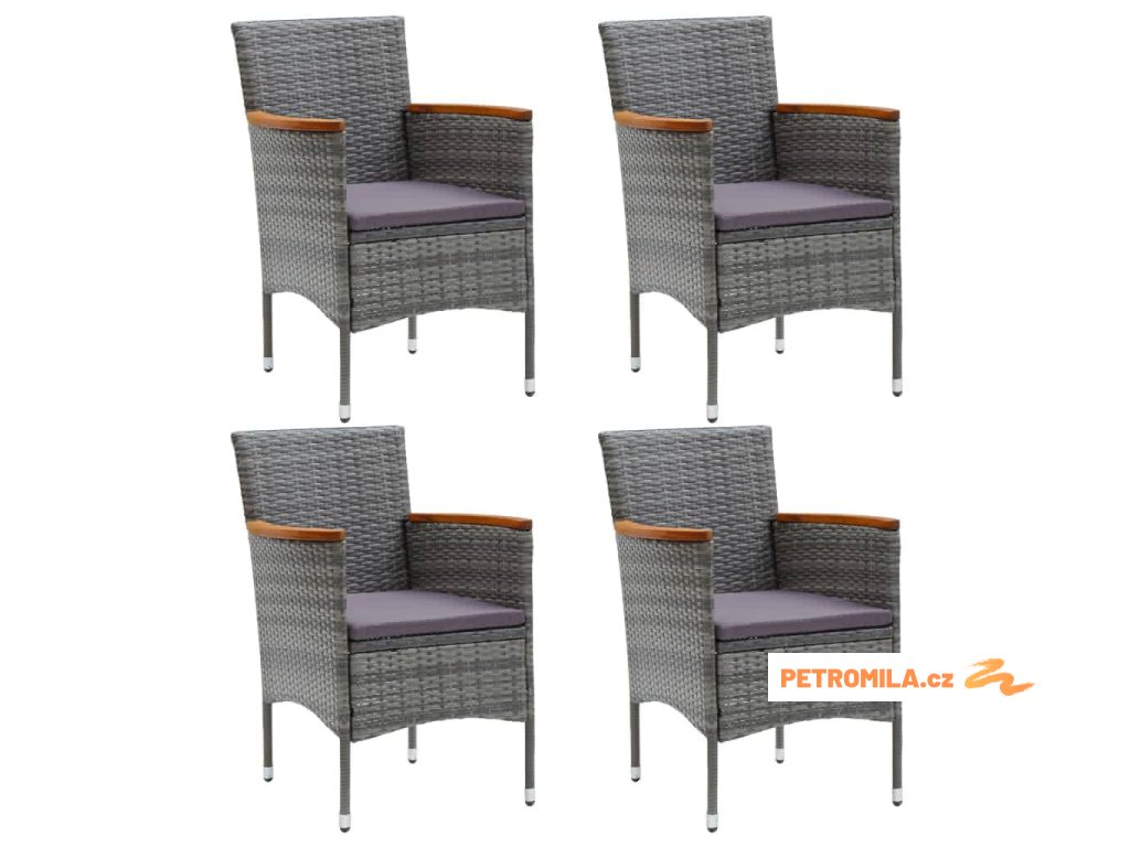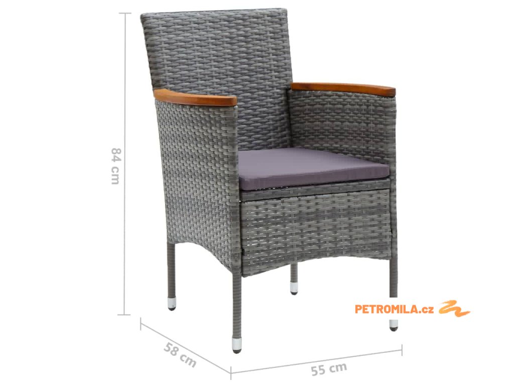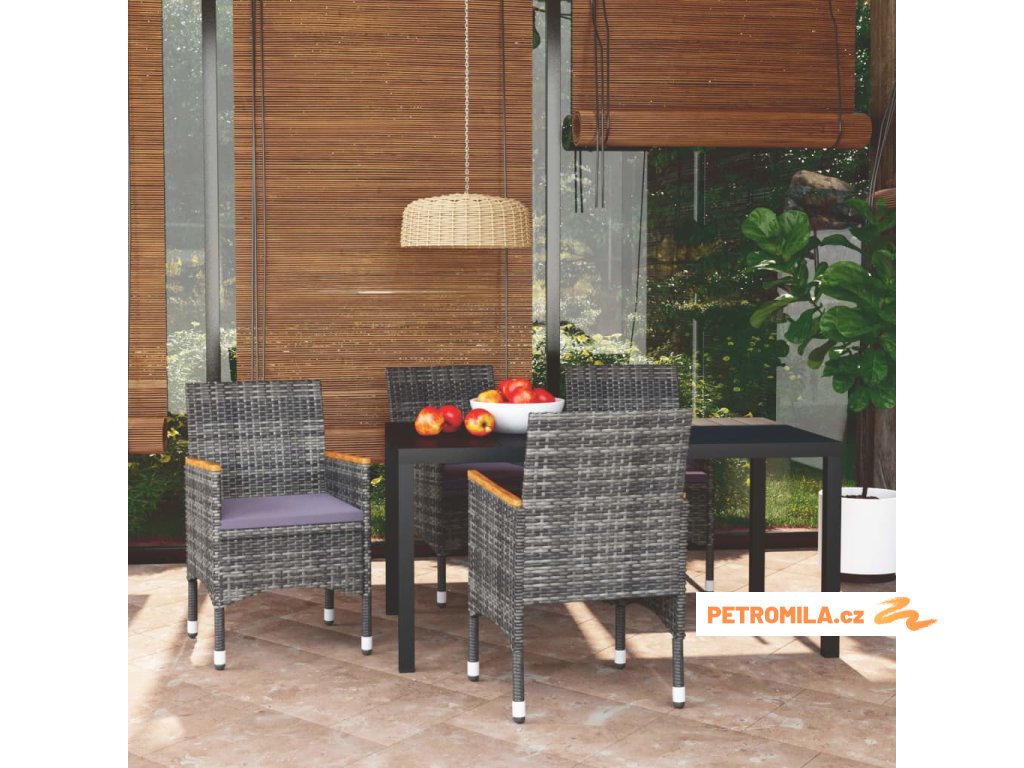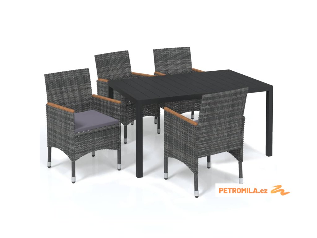 5dílný zahradní jídelní set s poduškami polyratan šedý