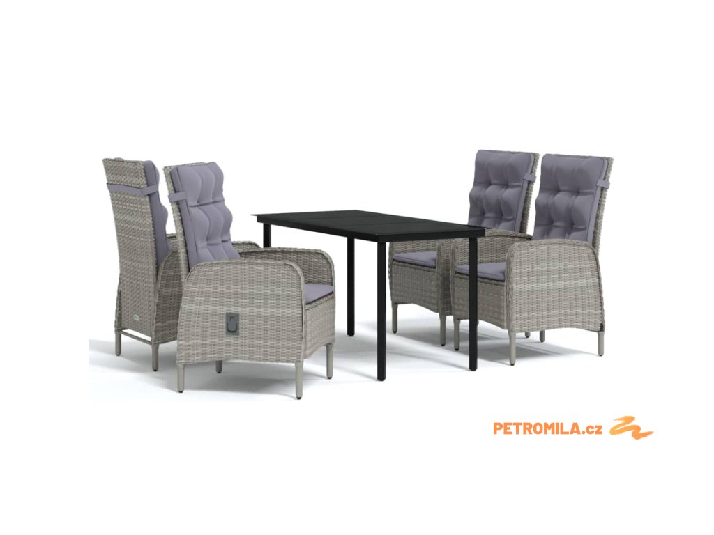 5dílný zahradní jídelní set s poduškami šedý a černý