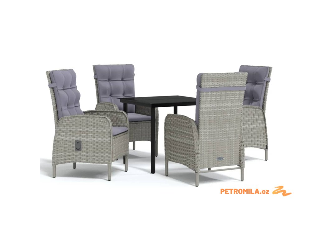 5dílný zahradní jídelní set s poduškami šedý a černý