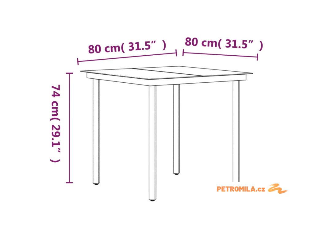 - Rozměry stolu: 80 x 80 x 74 cm (D x Š x V)