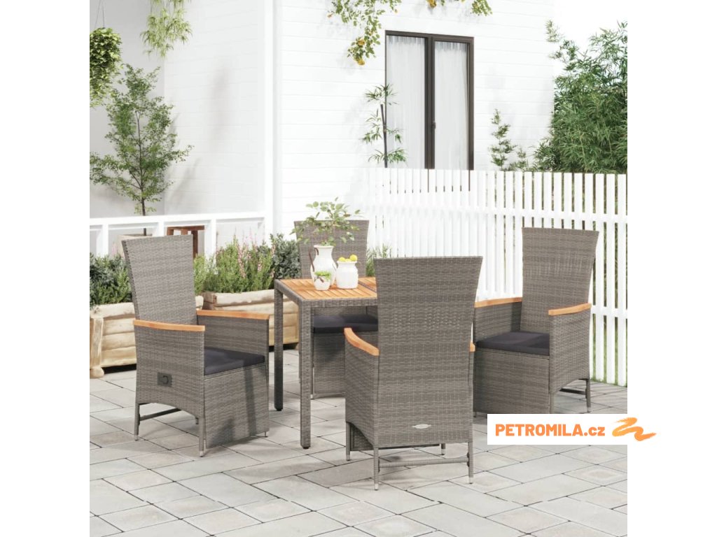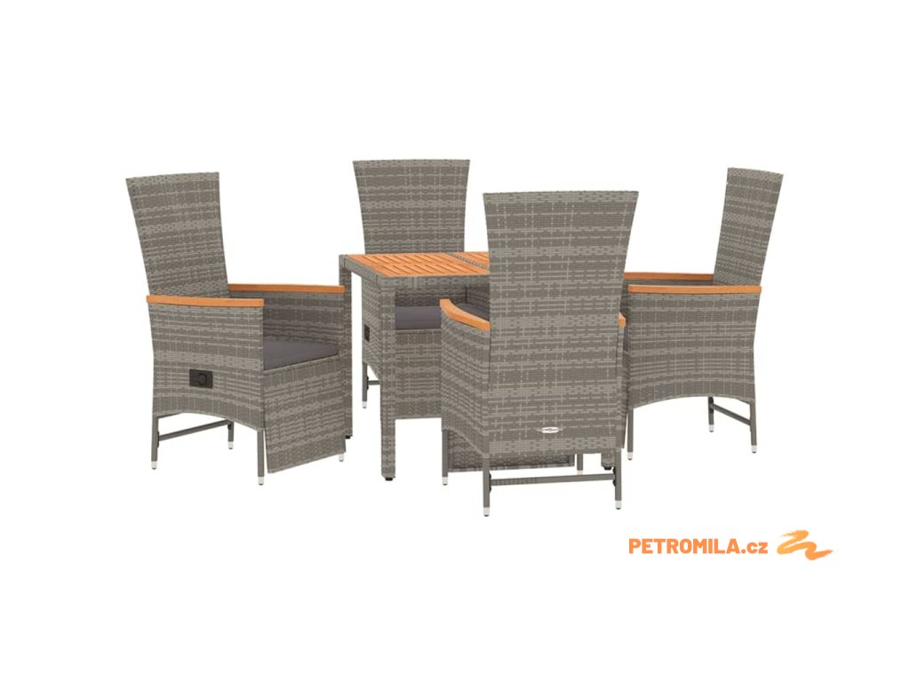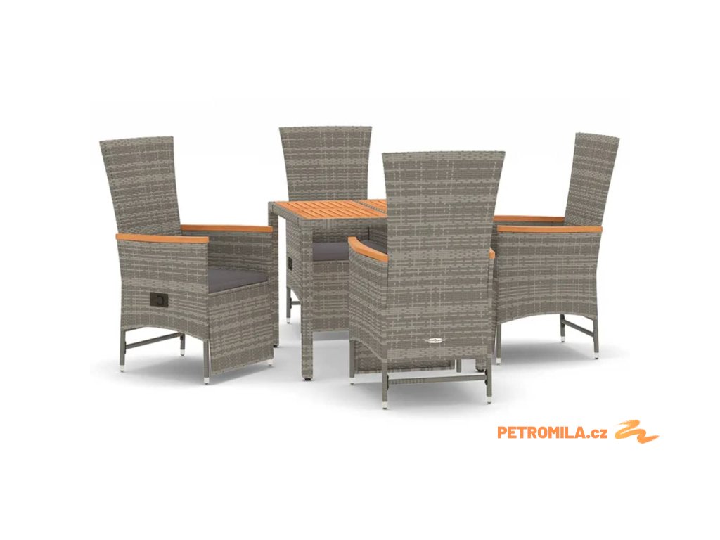 5dílný zahradní jídelní set s poduškami šedý polyratan