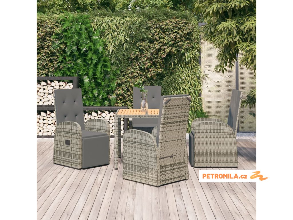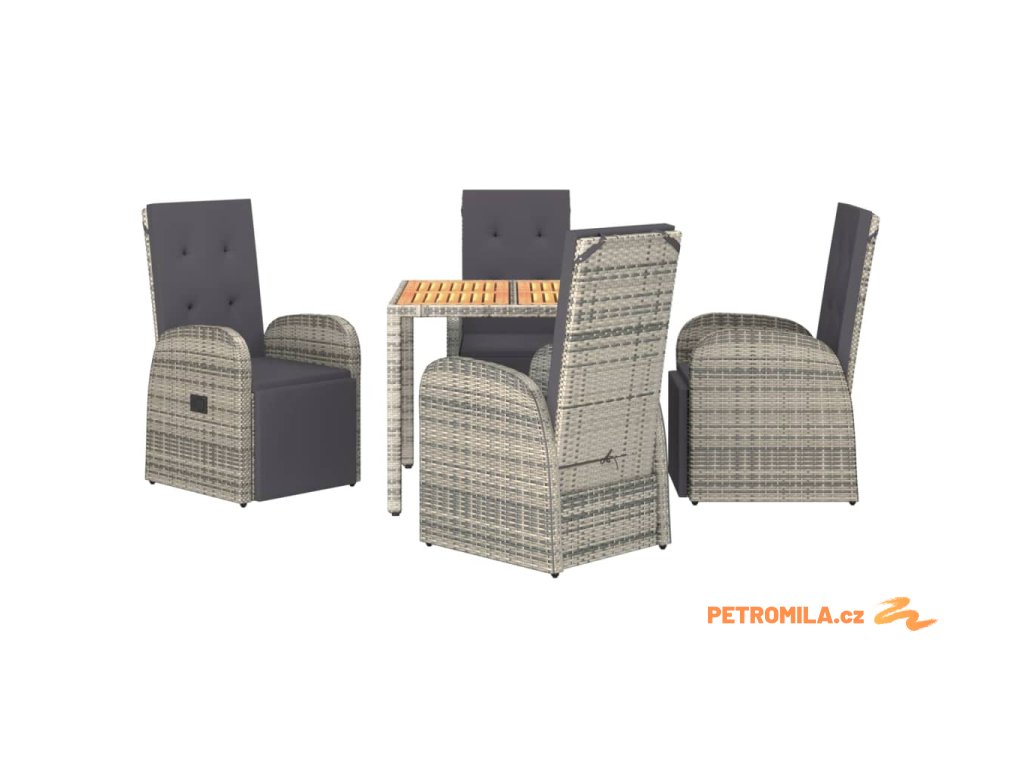 5dílný zahradní jídelní set s poduškami šedý polyratan