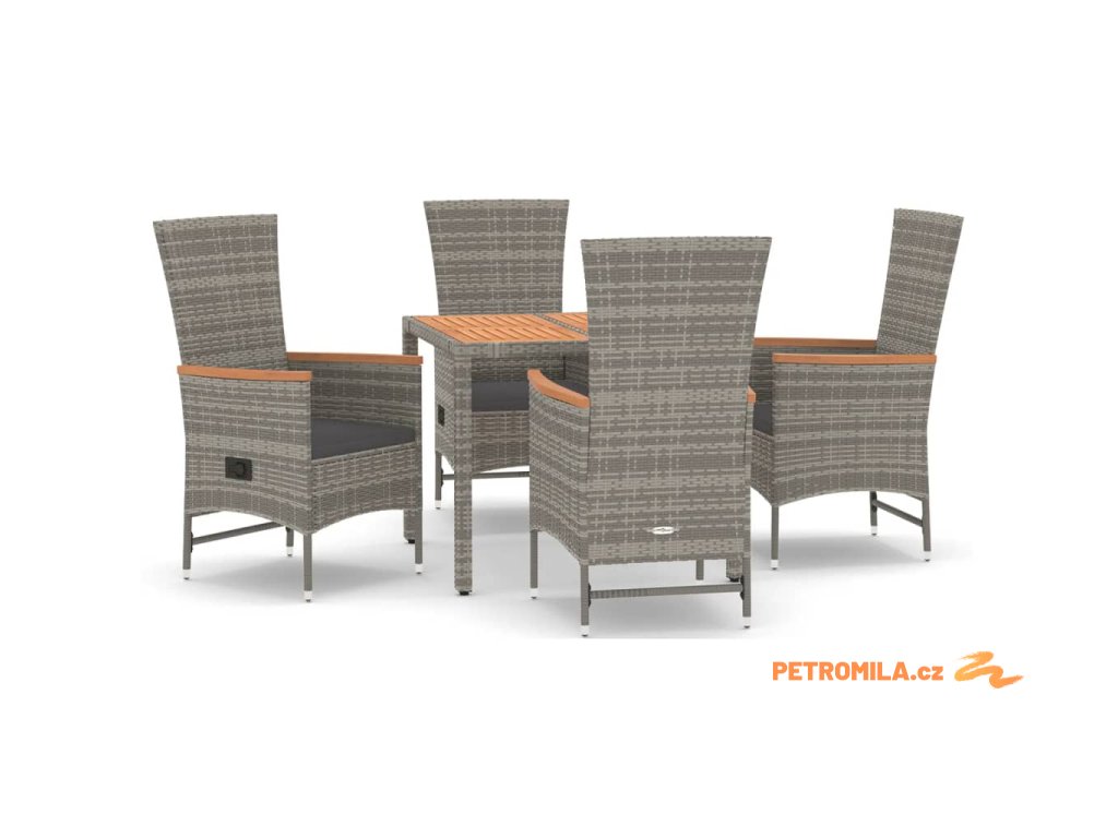 5dílný zahradní jídelní set s poduškami šedý polyratan